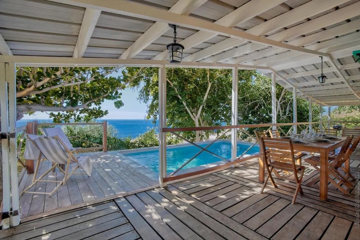 Maison récente avec vue imprenable sur la Mer des Caraïbe . Cette maison entièrement équipée et climatisée vous promet un séjour inoubliable . 3 chambres climatisées( 2 avec lits Queen size , 1 avec 2 lits simples ) . 2 salles d'eau avec douche à l'italienne , 2 WC dont 1 indépendant. 1 salon/cuisine de 22m2 (canapé convertible ,table basse ,TV , cuisine équipée avec four plaque induction lave vaisselle) 1 grande terrasse de 30M2 avec son bac à "punch" (piscine 3m/3m) Café dolce gusto