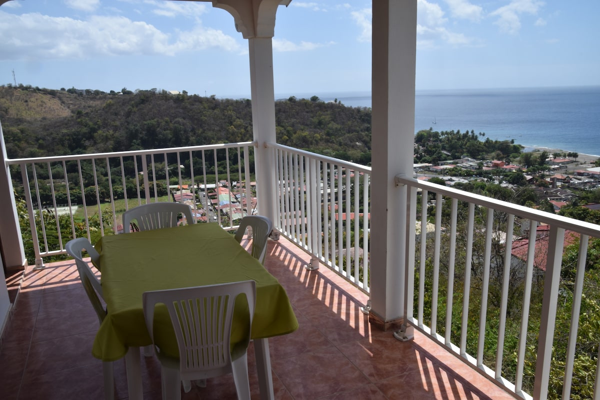 Maison T3 avec une vue imprenable sur la mer des Caraïbes. 2 chambres avec lit queen size 1 salle d'eau avec douche à l'italienne Wc indépendant Grand séjour avec cuisine tout équipé Terrasse de 30m2 avec salon et table pour repas Bac à punch (piscine 3x3)