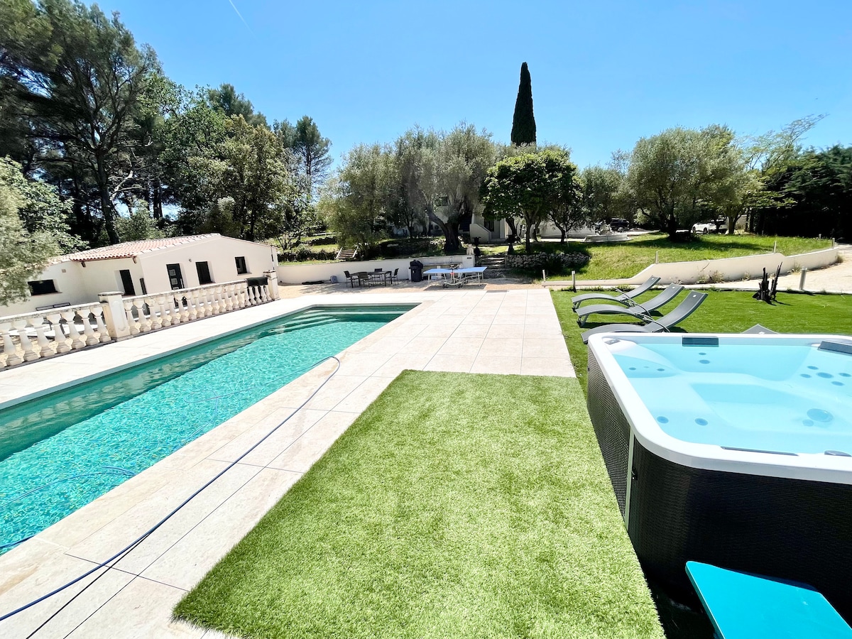 Large "Provence style" Villa with 4 bedrooms, 3 bathrooms, 2 wc, with terrace overlooking a large secured pool (11x5!) In a landscaped garden of 2200m² (2 spare beds in the laundry room) 2 minutes walk from the center of a typical village of Provence, 10 minutes drive from the beaches (Bandol, Les Lecques, La Ciotat) and Castellet racestrack /Golf . BBQ + plancha + WIFI Fiber+ TV + household equipment 10 mn driving to beaches.