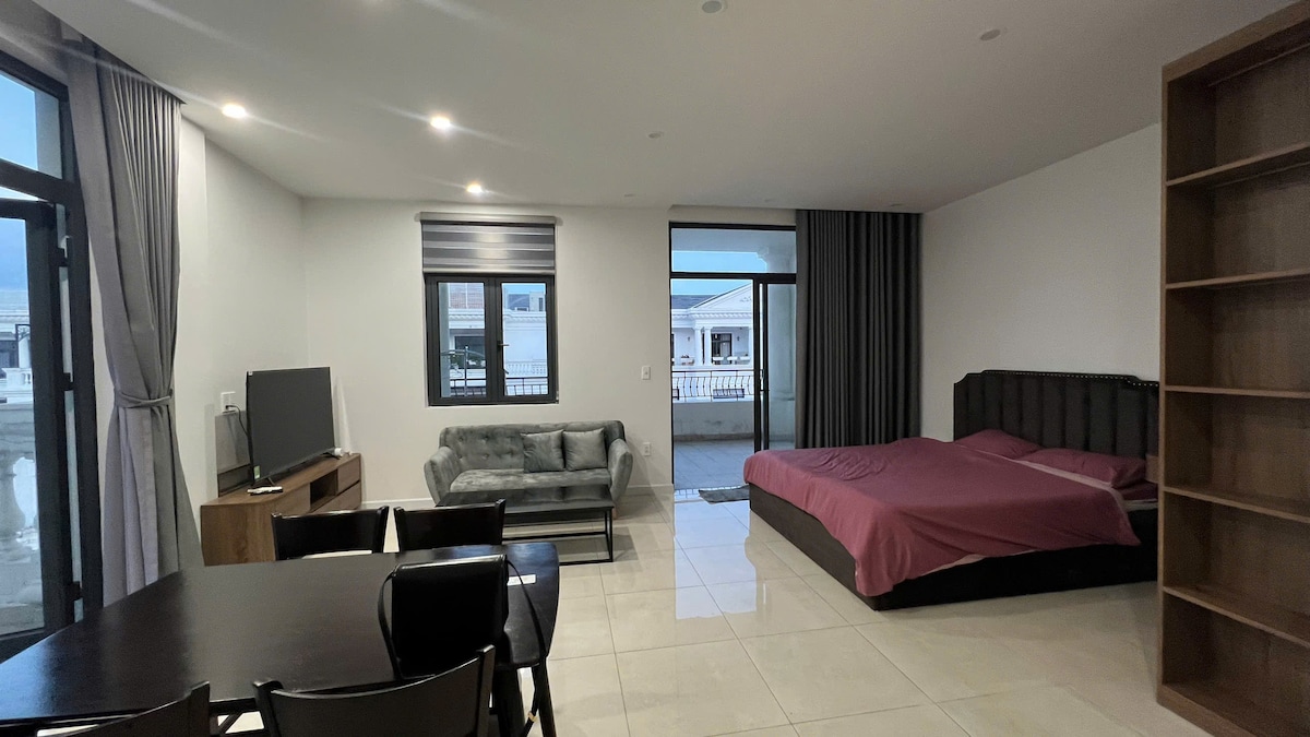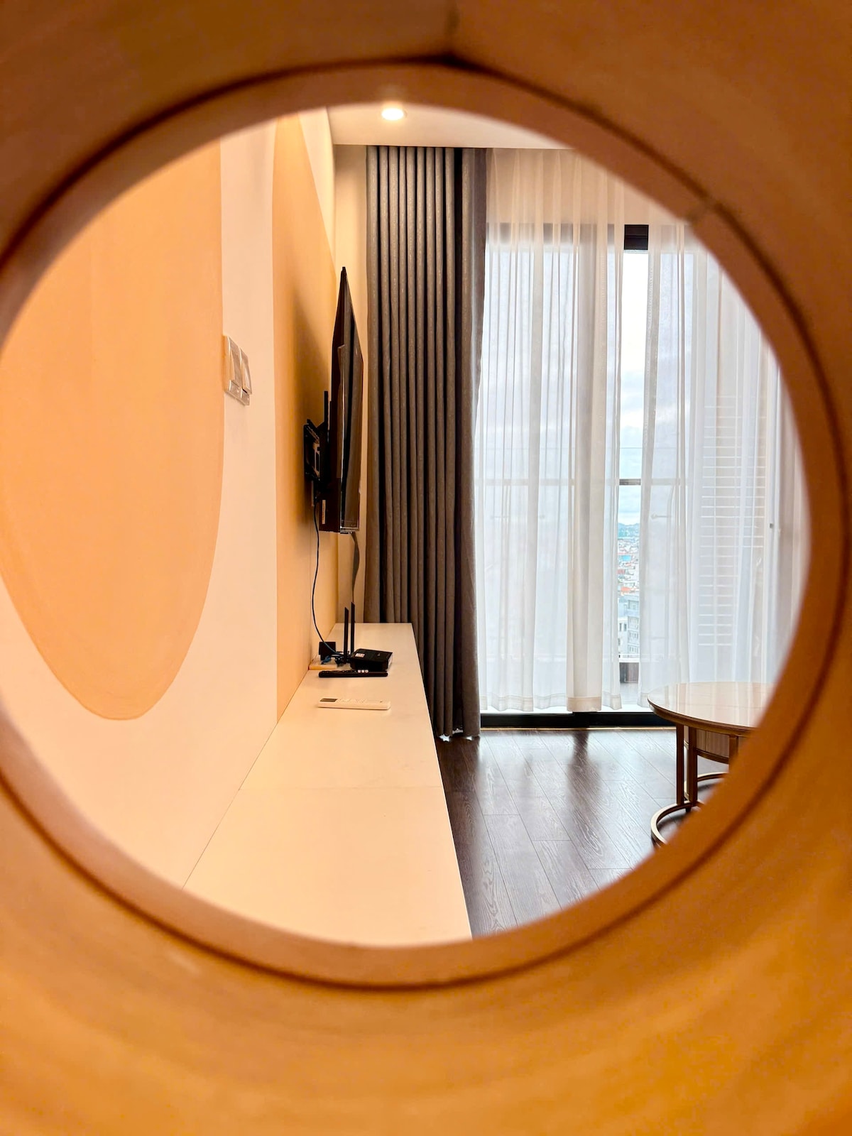 Căn hộ đầy đủ tiện nghi, nội thất sang trọng, ban công tầng cao, view bao trọn thành phố.