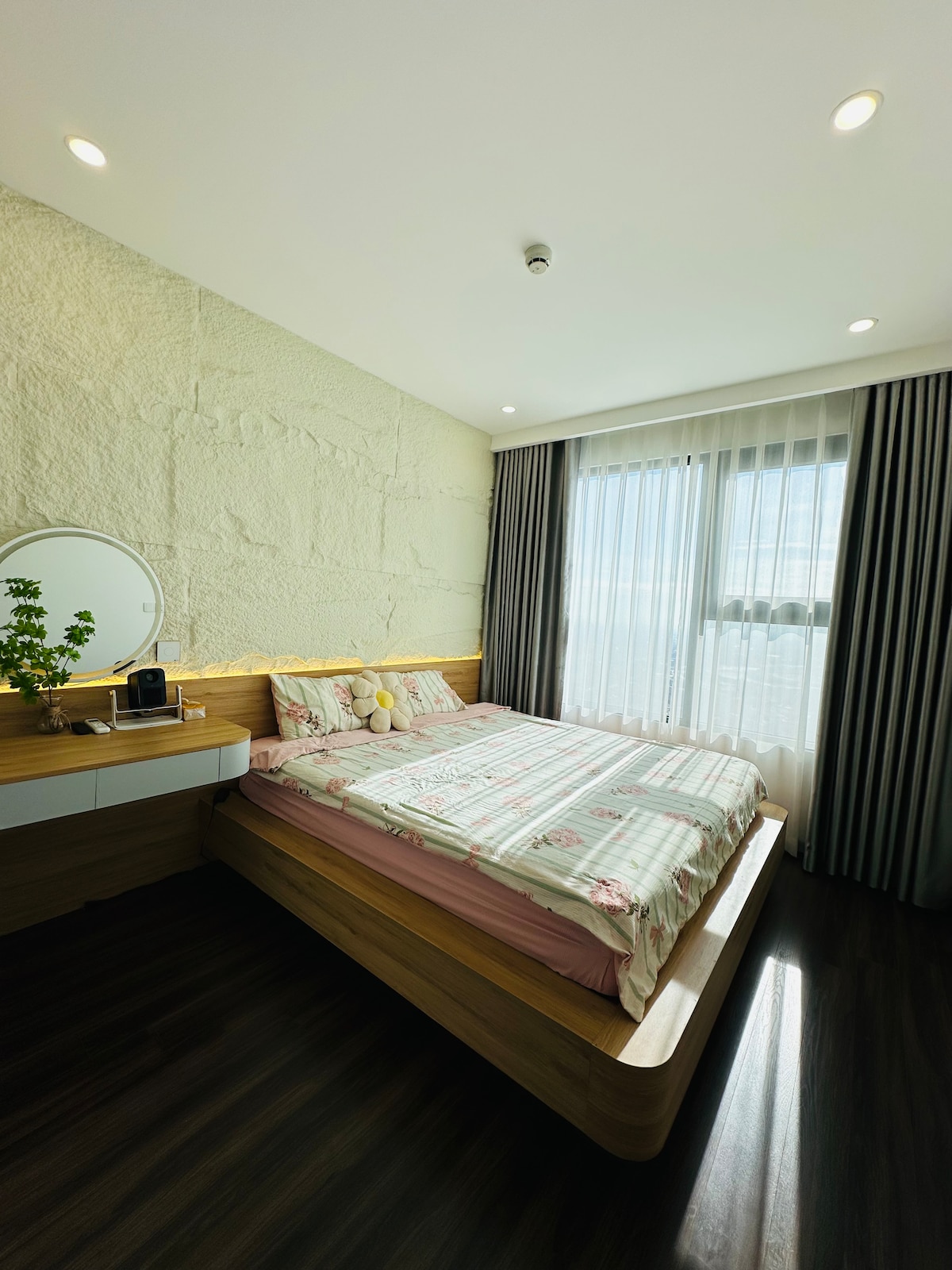 Căn hộ có phòng khách, 2 phòng ngủ, 2 nhà VS, căn bếp với đầy đủ tiện nghi, có máy giặt sấy, điều hòa, tủ lạnh, lò vi sóng,...