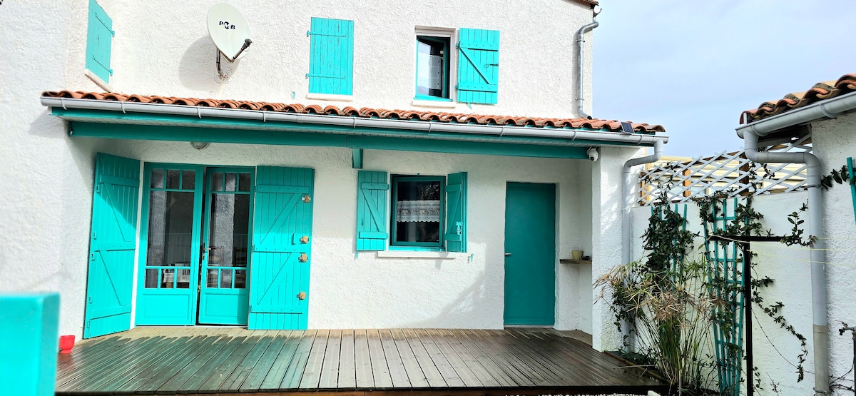 Maison idéale pour les vacances. Proche centre du Château d'Oléron (10 min à pied) petite ville typique classée, très animée l'été, proche pistes cyclables, proche plage (10 min à pied). jardin ombragé, sans vis à vis. Idéal pour des vacances reposantes avec des enfants ou des amis. Pour l'hiver, il y a un poêle à granulés et des chauffages électriques. Le marché typique du chateau d'oleron est ouvert toute l'année. La maison est agréable en hiver également.