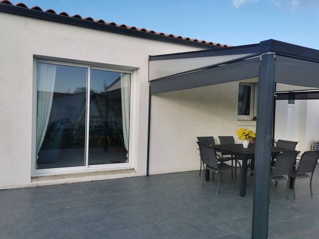 Maison neuve tout confort. Meublé 3 étoiles. Quartier calme. Petit animal accepté, Matériel bébé à disposition, Linge lit fourni. Ménage en option A vélo : Plage & forêt 10min env, Centre bourg 7min env Pièce vie: salle à manger salon BZ confortable 140x200, cuisine équipée Suite parentale: chambre lit mérinos 140x190, s.d'eau séparée, Wc indépendant Patio clos 30m². Barbecue Parking privé caméra et parking public à 50m, râtelier 4vélos Clim chauffage LL LV tv wifi Arrivée autonome possible