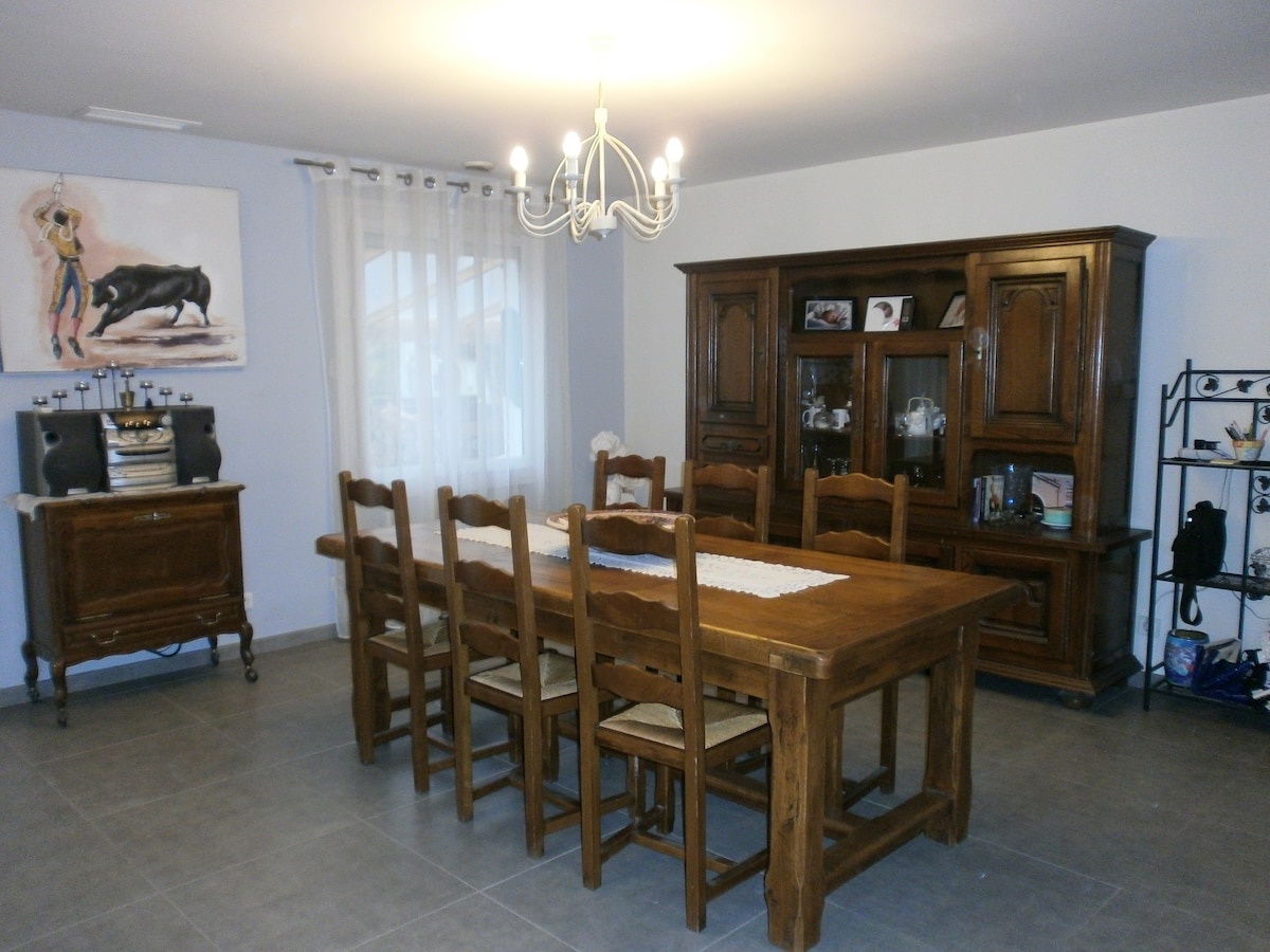 Charmant duplex indépendant attenant à notre maison, avec entrée privée par le garage. 36 m² sur 2 niveaux : cuisine équipée, coin repas, canapé convertible et TV en bas. À l’étage : lit double, 2e canapé convertible, dressing et grande salle de bains avec douche, baignoire, vasque et WC. Terrasse extérieure pour manger au calme. Idéal pour séjour détente proche du lac du Crès (à 10 min à pied). Stationnement facile avec parking gratuit à 3 min à pied. Pas de fêtes. Logement non fumeur.