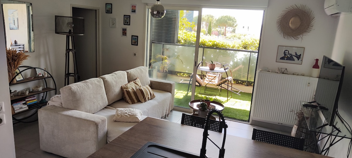 Logement indépendant de 45 m² au calme, au bas d’une villa, avec piscine privée 🏊♂️ entièrement réservée aux voyageurs et terrasse couverte 🌿 pour en profiter toute l’année. Accès privé et intimité totale 🔒. À 10 min de Montpellier, 5 min à pied du lac et 20 min des plages 🌊. Idéal pour un séjour détente en couple ou en petite famille, entre nature, ville et mer. Confort moderne et cadre paisible ✨. Stationnement facile et commerces à proximité pour un séjour sans contraintes 🛍️🚗.