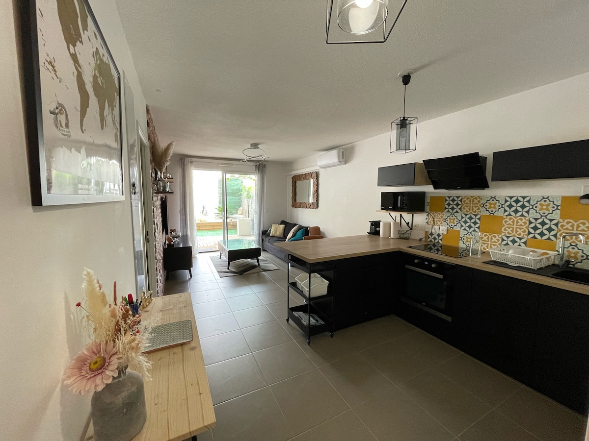 安静的公寓,位于村庄,距离蒙彼利埃20分钟