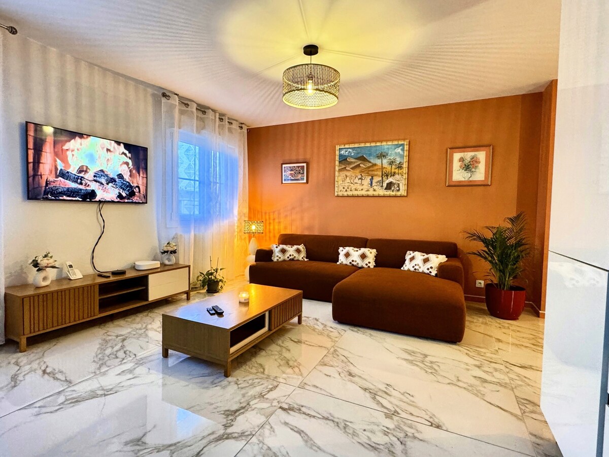 Profitez d'un logement élégant et central. A 15 minutes en vélo de la plage de Carnon. A 3 minutes à pieds du centre ville de Pérols avec restaurant, tabac, banque, médecins, commerce de proximité et marché (le samedi). Tramway à 3 minutes à pieds pour se rendre à Montpellier centre (gare Montpellier saint Roch). Aéroport et gare Montpellier Sud France à 10 minutes en voiture. Parcours santé, Parc Expo à 10 minutes en vélo. Recharge possible pour voiture électrique à 20euros la recharge.