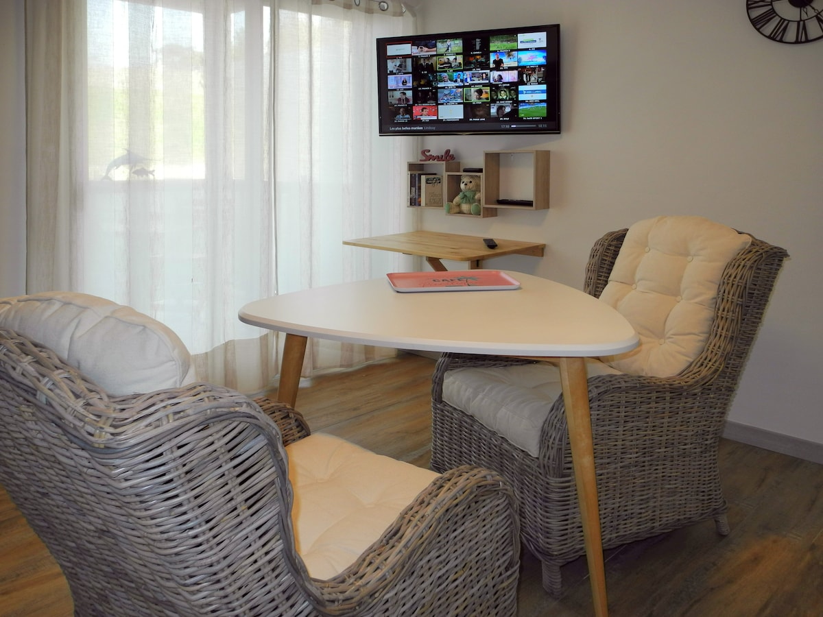 Appréciez la douceur bretonne dans cette dépendance à l'allure d'une tiny house au coeur de la campagne croisicaise et à deux grains de sable de l'océan. Nous vous accueillerons dans notre studio indépendant attenant à notre maison. L' essentiel s'y trouve pour passer un agréable séjour en couple ou en petite famille. kitchenette, chambre en mezzanine (lit 140x190, Bultex neuf avril 25) pièce de vie élégante donnant sur le jardin (lit simple d'appoint sur demande) terrasse, parking gratuit.