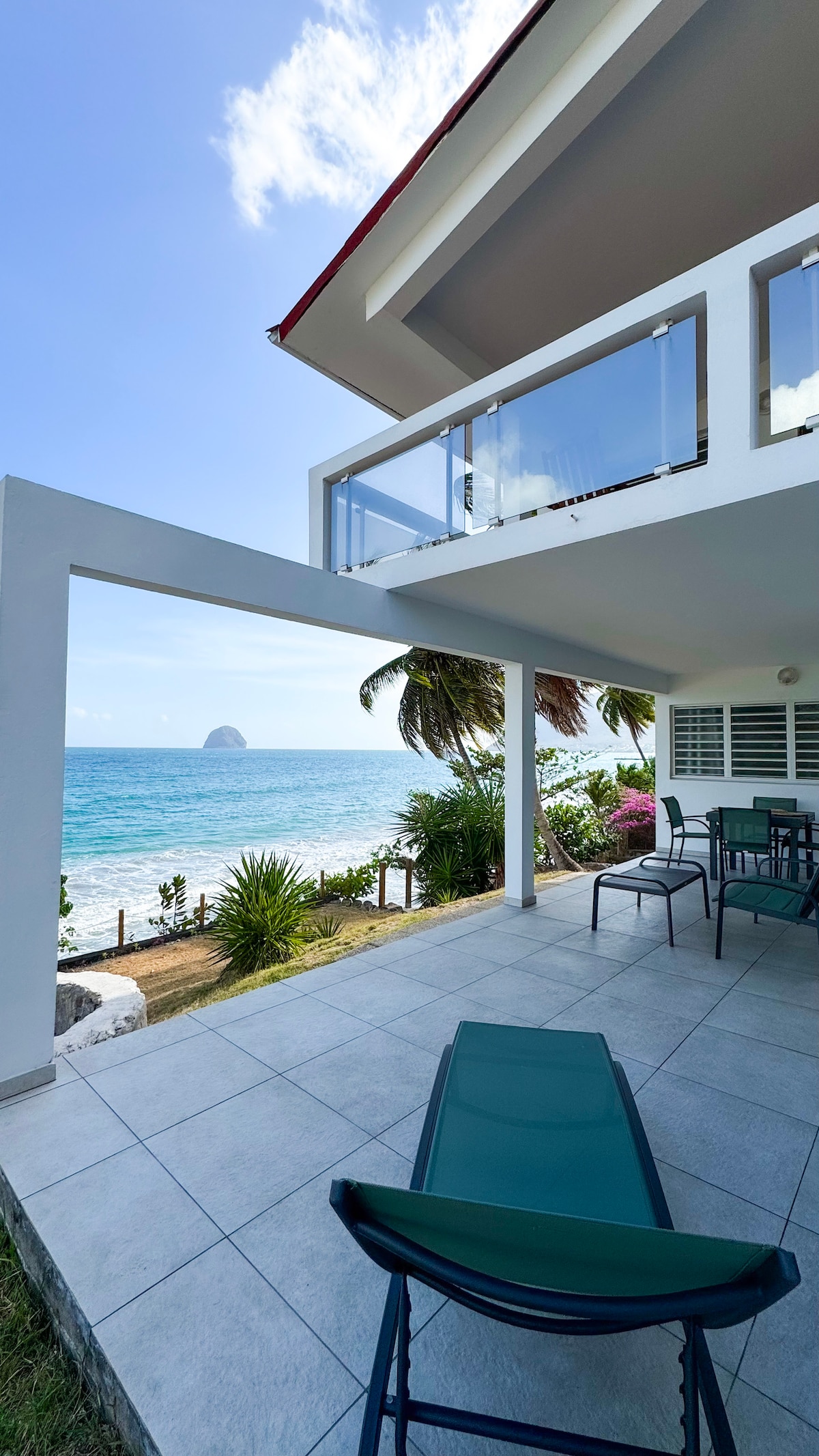 Détendez-vous dans cette villa calme et élégante située en bord de mer et offrant une vue à 180° sur le sud de la Martinique et le Rocher du diamant. La villa, récemment refaite à neuf, offre un cadre idyllique pour des vacances reposantes, tout en étant située à moins de 3 minutes de la plage du Diamant, des restaurants et magasins. Un service de conciergerie est à votre écoute au quotidien pour vous permettre de profiter de chaque instant.