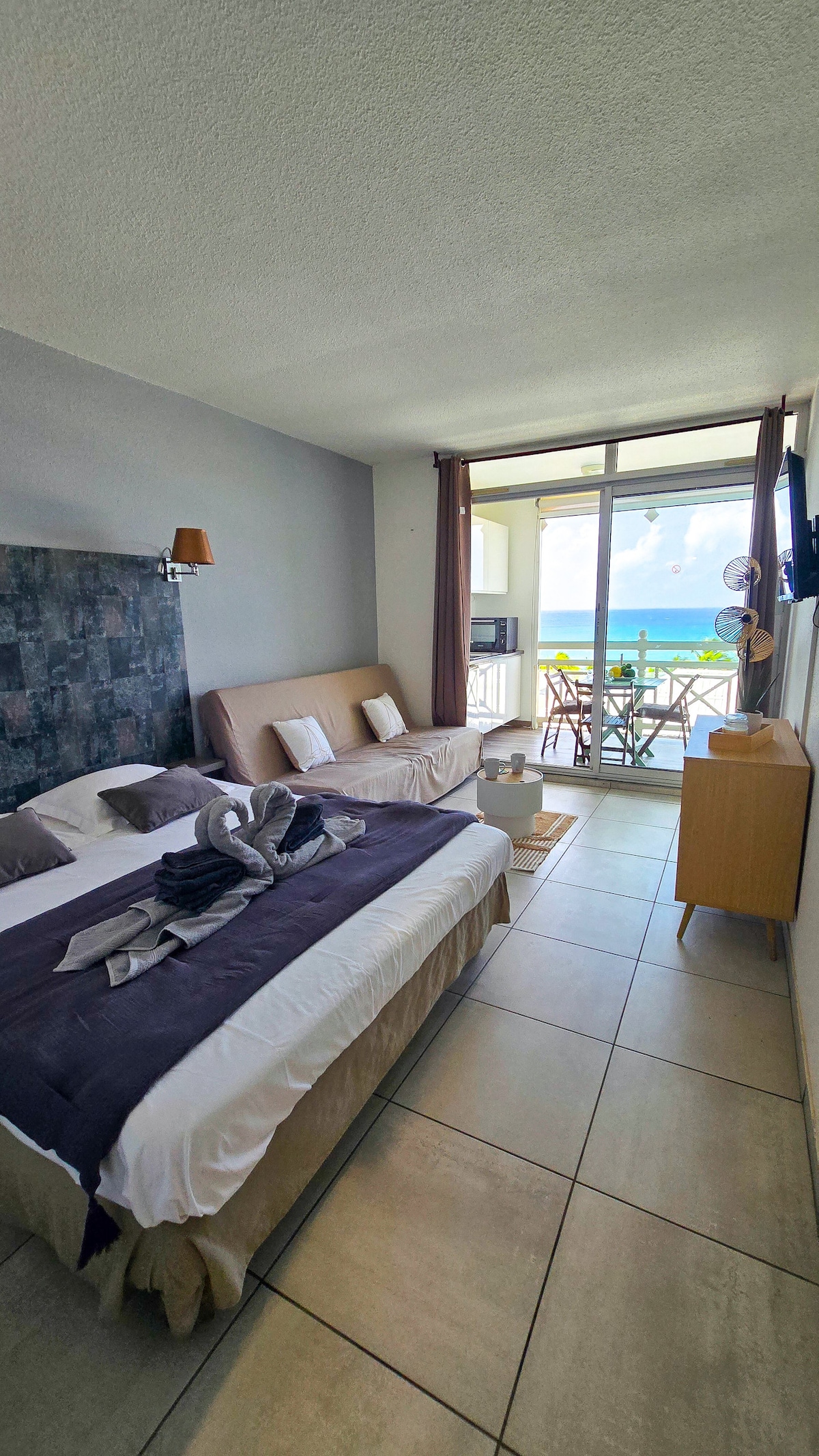 An exceptional place to enjoy Martinique! Magical views, direct access to the sea and the Black Diamond swimming pool ???? Our chic white studio boasts a beautiful terrace with outdoor kitchen, so you can live to the rhythm of the island, lulled by the lapping of the waves and the song of the birds. Magnificent beaches are all around, like Anse Noire, where you can swim with giant tortoises! And the many typical villages are an opportunity to discover Creole culture.