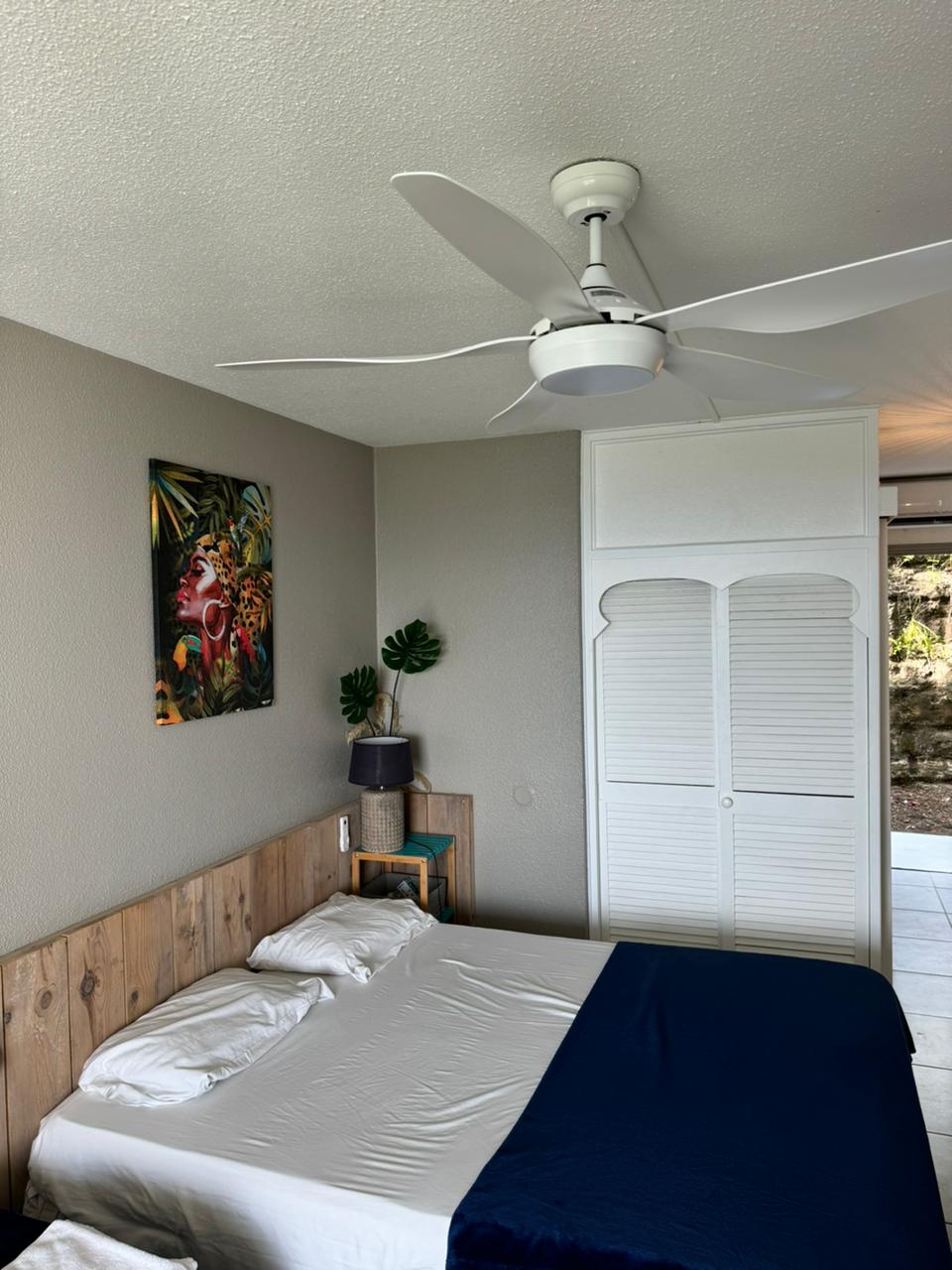 Le studio est situé à 800m de la plage de l'Anse à l'Ane, sur les hauteurs: il bénéficie des alizés aux heures les plus chaudes. Dans un environnement verdoyant, calme et résidentiel, votre discrétion est assurée. Idéal pour un couple vous pourrez profiter de la piscine commune que vous partagerez avec les propriétaires. Vous profiterez d'un espace détente doté de 2 terrasses, d'un salon de jardin et de ses murs végétaux.