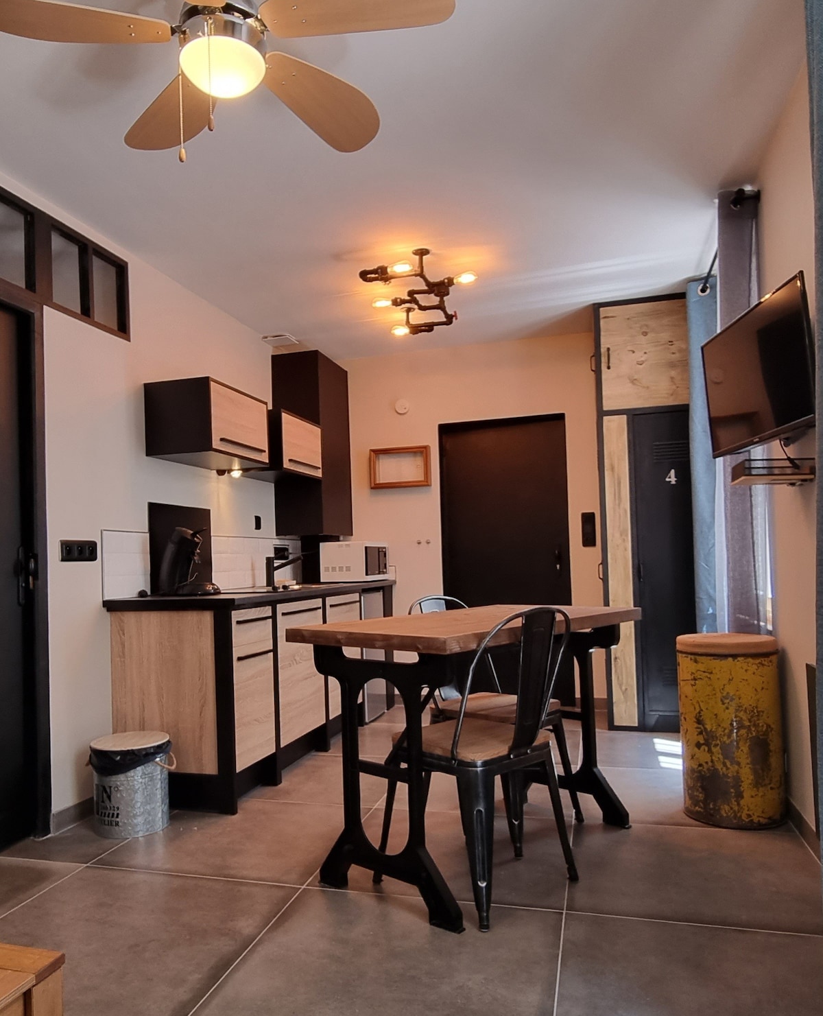Appartement de 50 M2 entièrement rénové dans un style '70. Ce lieu est atypique et rare. Son emplacement est idéal, très proche des commerces et de l'hyper centre. il est composé de : * une terrasse extérieure et jardin attenant de 30 m2 * Une chambre et salle de bain attenante spacieuse. * Un coin cocon lecture ou repos * Une cuisine ouverte très fonctionnelle * Un coin buanderie * Un salon avec canapé cuir et platine vinyle et un vidéoprojecteur. nous n'avons pas de TV * Parking en face.