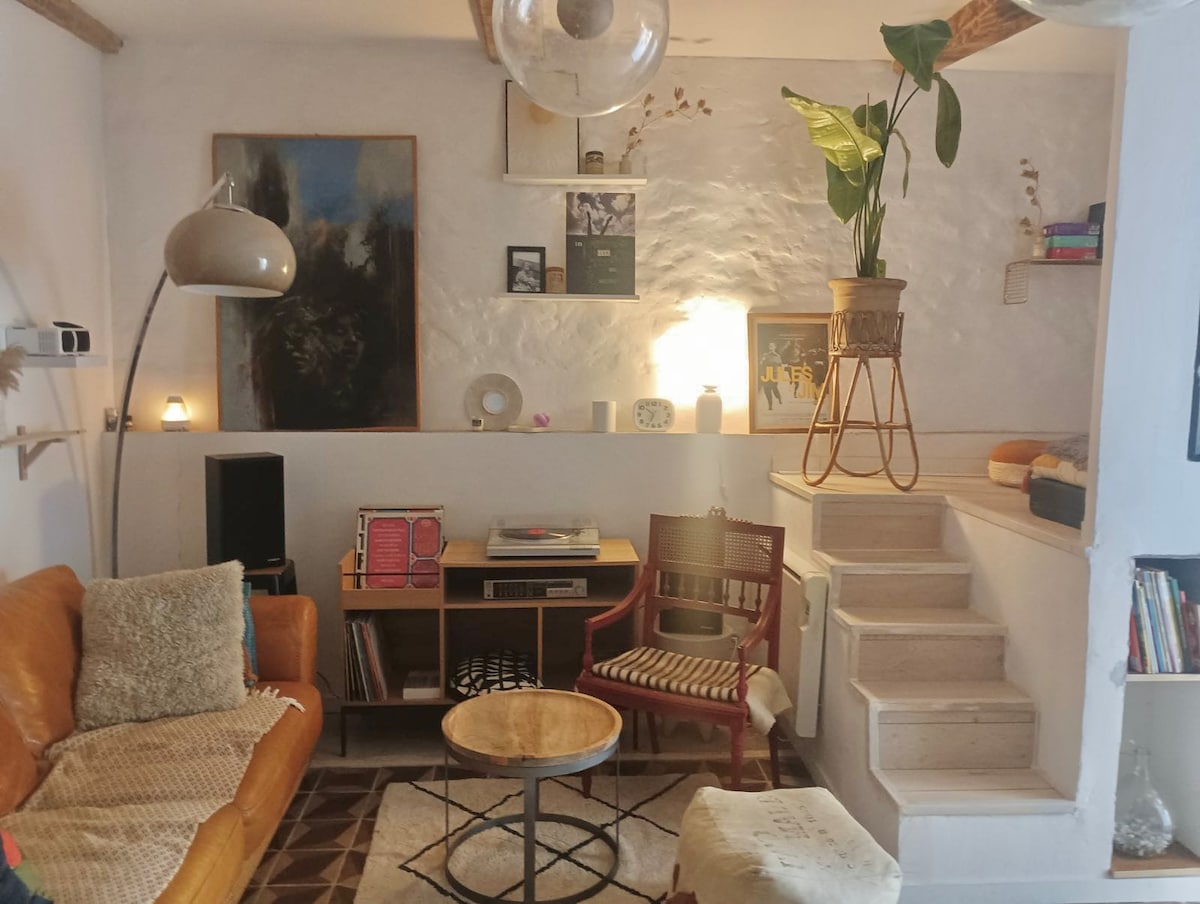 Charmante maison de caractère de 100m2, rénovée avec soin en 2021 située dans le quartier historique du village. Le logement se compose d'un grand salon séjour de 53m2, d'une cuisine ouverte et d'une arrière cuisine. A l'étage vous trouverez deux chambres spacieuses avec lit double (140x190), balcon et vue sur les vignes et montagnes, un espace bureau bibliothèque, la salle de bain avec douche italienne et les WC séparés. Parking privé gratuit Wifi haut débit.