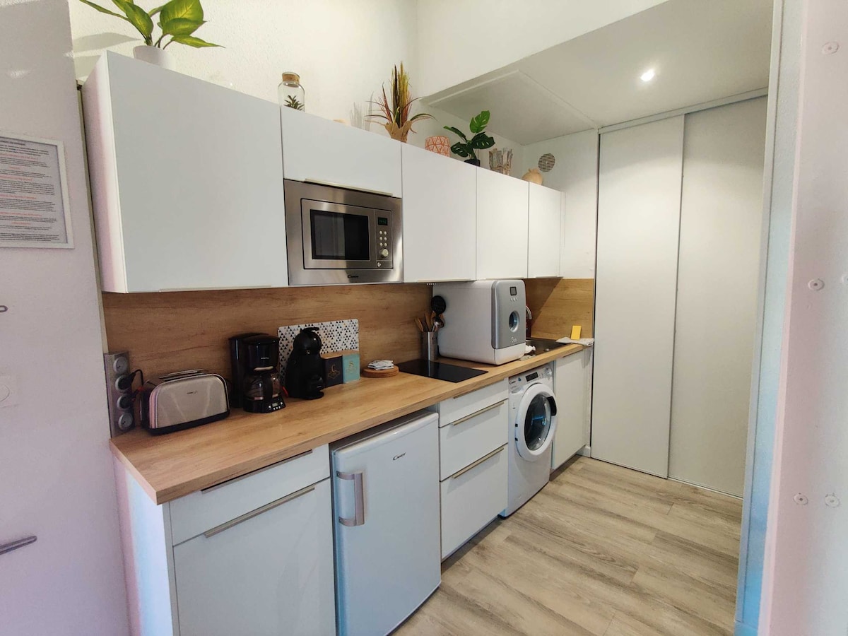 Cosy studio 23 m² en rez-de-jardin, entièrement rénové, à deux pas de la mer ! Très lumineux, exposé plein sud, climatisé et équipé de la fibre. Nouveau canapé rapido (mars 2025) avec matelas ferme de 21 cm pour un bon confort. Place de parking privative Idéal pour un couple avec un enfant ou un ado (maximum 3 personnes). Linge de lit et serviettes de toilette fournis. Un état des lieux est réalisé à l’arrivée et au départ. 🕒 Arrivée à partir de 15h – Départ avant 10h