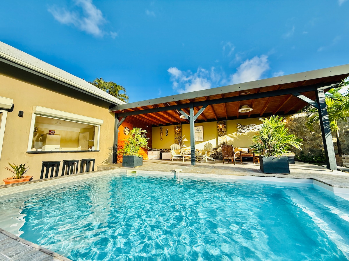L'Appart'villa créole chic vous invite à vivre une expérience unique au cœur de la campagne et de la montagne martiniquaise ! Idéal pour 2 couples en escapade ou une famille avec 2 enfants, ce nid douillet offre une vue imprenable sur la baie . - Calme et sérénité au milieu de la nature verdoyante - Position stratégique pour explorer toute la Martinique - Piscine privée avec accès direct depuis les chambres et le salon - Cuisine équipée ouverte pour des apéritifs ensoleillés au bord de l'eau