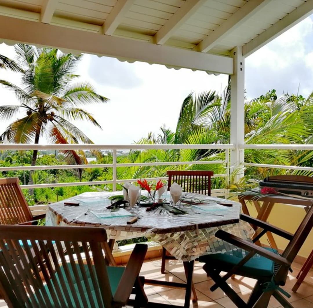 Nous vous accueillons dans ce bel appartement T3 en bas de villa avec piscine privée et vue mer. Il se compose d'un séjour avec cuisine ouverte donnant sur une grande terrasse extérieure qui pourra vous accueillir lors des repas et moments de détente, de 2 chambres climatisées (1 lit king size + un lit simple), d'une salle d'eau et WC séparés. Vous bénéficiez d'un accès à une belle piscine ensoleillée directement depuis votre terrasse. Très bien situé en Guadeloupe, proche toutes commodités.