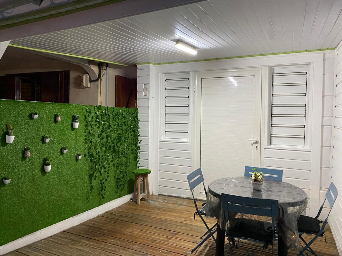 Durée minimale de séjour : 3 nuitées Appartement T1 de 33 m² avec terrasse couverte donnant sur un jardin verdoyant. 1 lit queen size. Emplacement idéal (au centre de l'île) pour découvrir la Guadeloupe. Proche commerces et centres commerciaux. A 10 mn de l'aéroport, du port de croisières de Pointe-à-Pitre et de la ZI de Jarry. A 15 mn des premières plages.. Le logement dispose d'une citerne d'eau permettant de tenir 24 h en cas de coupures d'eau dues aux travaux de réfection du réseau.