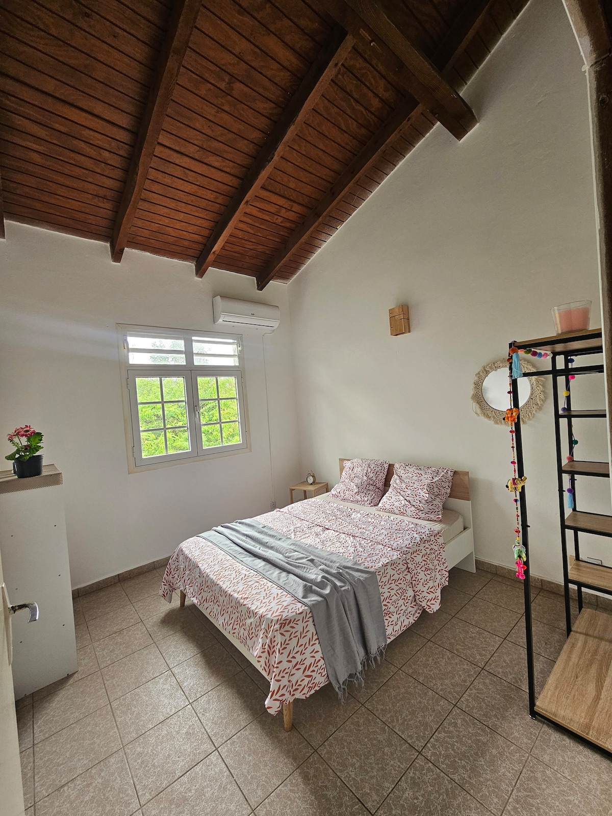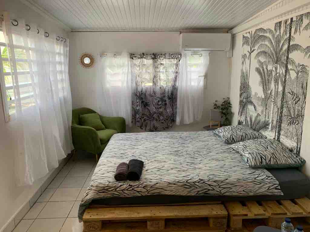 LE MANIOC Située en plein Cœur de notre iles si accueillante, dans une petite résidence locale, non loin de tout commerce ( boulangerie, épicerie, pharmacie, docteur etc.….). Nous vous proposons une chambre climatisé avec rangement, un salon avec un canapé convertible pour se détendre après une belle journée d'exploration. Une cuisine équipée ouverte, une salle de bain avec w.-c. et une terrasse équipée d'une bar extérieur.