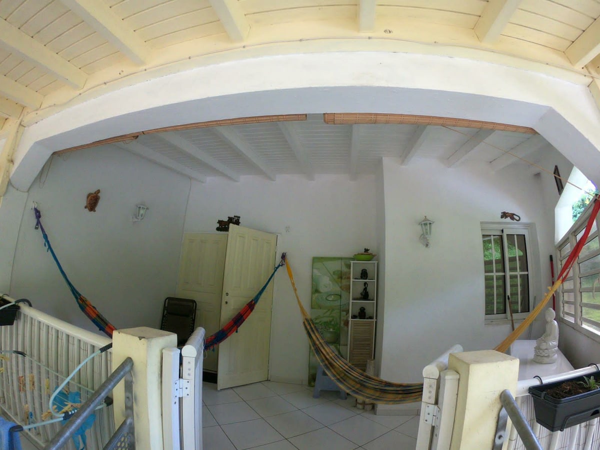 Un hamac ! Chouette c'est sympa ! Mais sur la terrasse ! également 1 lit de camp. Dans la campagne du Gosier ! Si vous souhaitez passer 1 nuit minimum ou 8 maximum à 10 mn de l'aéroport ainsi que de la plage de la Datcha du Gosier, ce bivouac est pour vous ! Vous pourrez tout de même utiliser la cuisine avec tout le confort. il faut une voiture pour cette location. Pour les cools. Cool les vacances chez Malou ! Avant de venir, veuillez m'appeler svp.