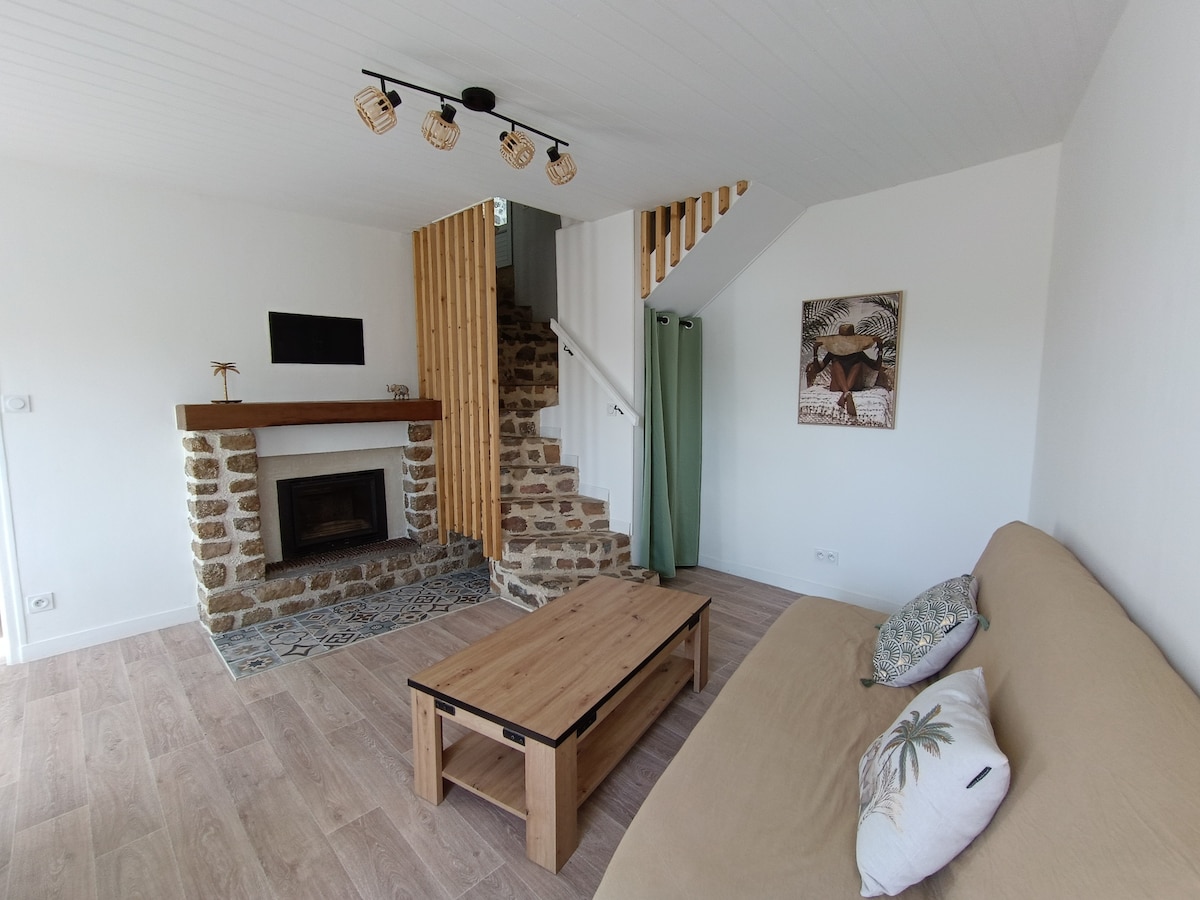 Au coeur de la campagne Mayennaise, venez découvrir cet appartement indépendant de deux pièces. Vous aurez pour vous un grand salon/salle à manger, une cuisine équipée, et à l'étage, une chambre à coucher avec un lit double et un lit simple, une salle d'eau (avec WC indépendants). Le logement est équipé du Wifi . Aucune maison dans le voisinage direct, le logement est donc très calme. Les propriétaires logent dans la partie droite de la maison.
