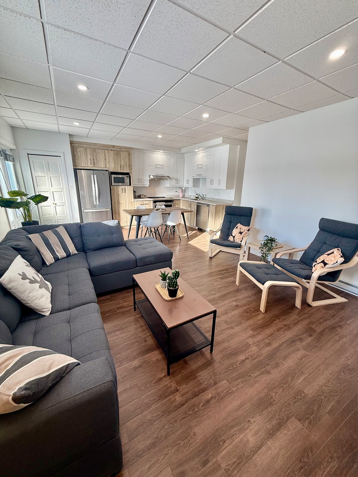 Bienvenue dans cette suite meublée, située au 3e étage, avec balcon privé et vue imprenable sur le lac Mégantic. En bord de l’eau, elle offre un cadre paisible et enchanteur pour un séjour court ou moyen. Profitez d’une cuisine entièrement équipée, d’une belle lumière naturelle et d’un confort moderne, à deux pas des activités nautiques, des commerces locaux et des sentiers du parc des Vétérans. Un lieu serein et chaleureux au cœur de Mégantic, idéal pour se ressourcer.