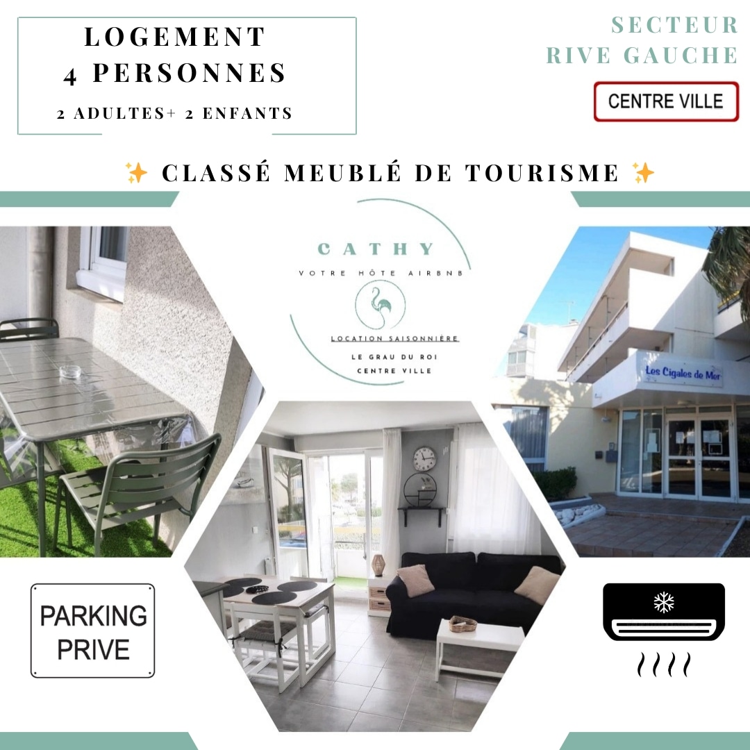 Bienvenue en petite Camargue Merci de lire toute l annonce tout y est décrit . Joli studio environ 30 m2 fonctionnel dans le centre ville du grau du roi à 1 mn de la plage. Il est situé au premier étage d une maison de ville (habitée) avec une cour arborée , il n y a pas de bruit malgré l emplacement au centre . Terrasse ensoleillée pour prendre vos repas PARKING PUBLIC GRATUIT à 8 mn a pieds . Vous pouvez tout faire à pieds vous êtes dans le centre ville À votre disposition 2 vélos .