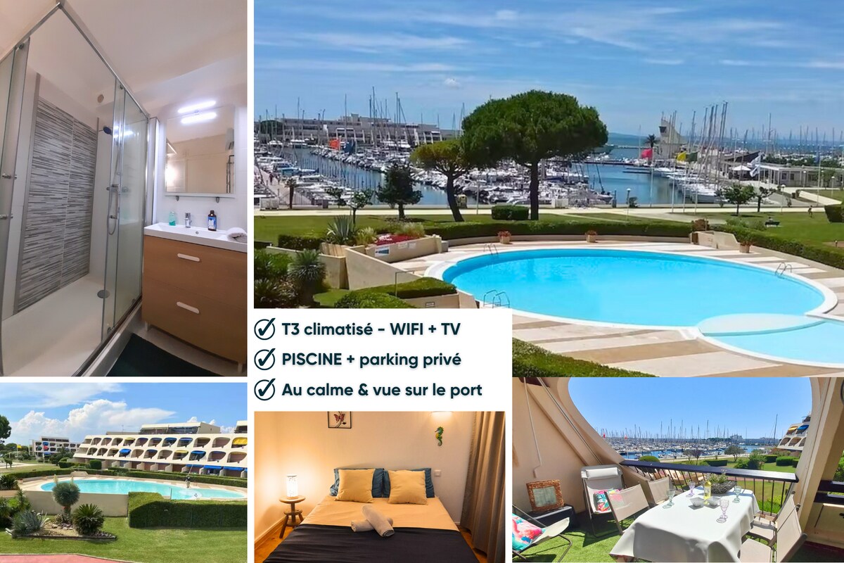 港口地平线 - 露台景观 游泳池 空调 无线网络