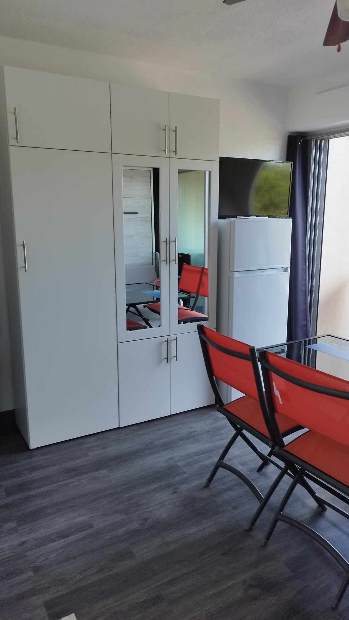 Studio de 26m2 (rénové en avril 2025) + balcon, classé 2*, vue mer exceptionnelle : port et Mont St Clair (Sète). Situé au dernier étage (ascenseur). Situation idéale au cœur de La Grande Motte (tout à pied), à 100m de la plage du centre, des commerces et des restaurants du front de mer. Épicentre pour les accès aux quartiers du point zéro (Thalasso Spa, tennis), du Couchant (par le port et front de mer), du Ponant (ballades en pinède et étang) et du marché (3min à pied). Local à vélos sécurisé.