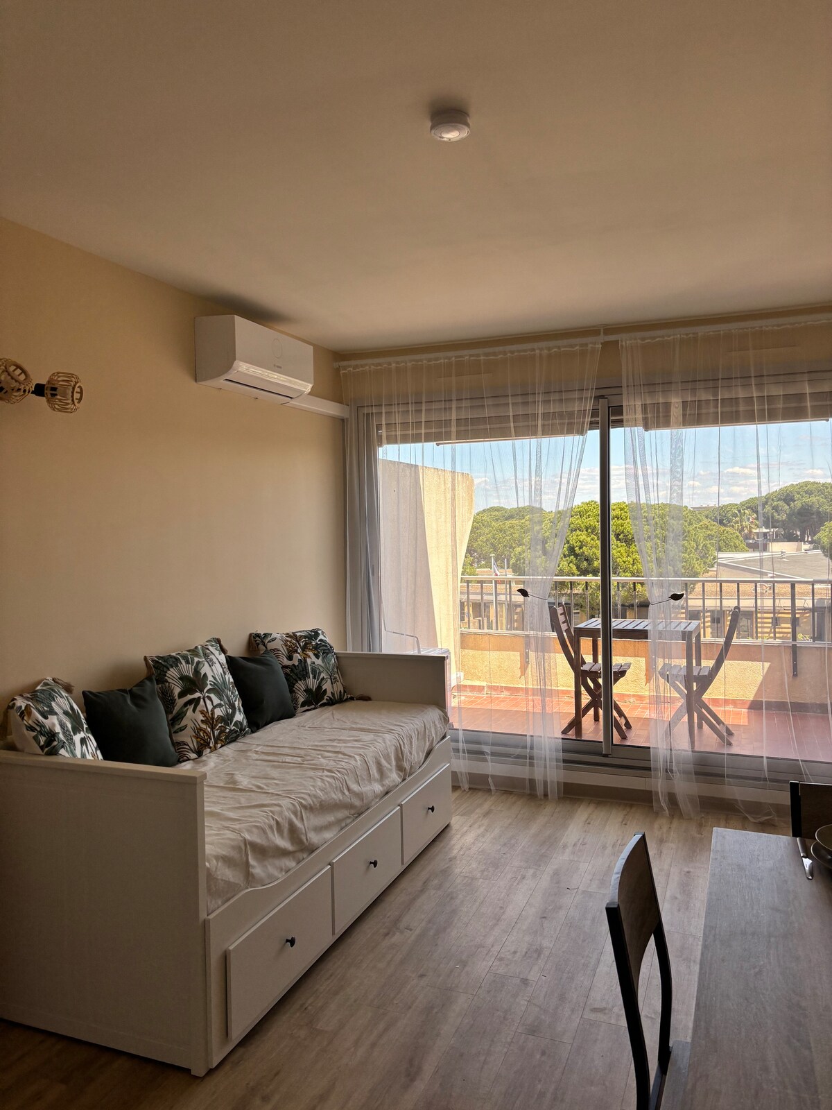 ☀️Relax in this quiet and elegant accommodation. ☀️In the heart of the marinas, pretty 20m2 studio and terrace with beautiful marina view, 3rd floor (no elevator). For 2 adults or 1 adult and 1 child ☀️It consists of a living room opening onto a beautiful terrace, air conditioning, a fully equipped kitchen, Nespresso, fridge, dishwasher, washing machine, electric oven, microwave... ☀️8 minutes walk from the beach and shops ☀️Private parking and free WIFI 🏊♂️POOL OPEN FROM May 15 to September 30