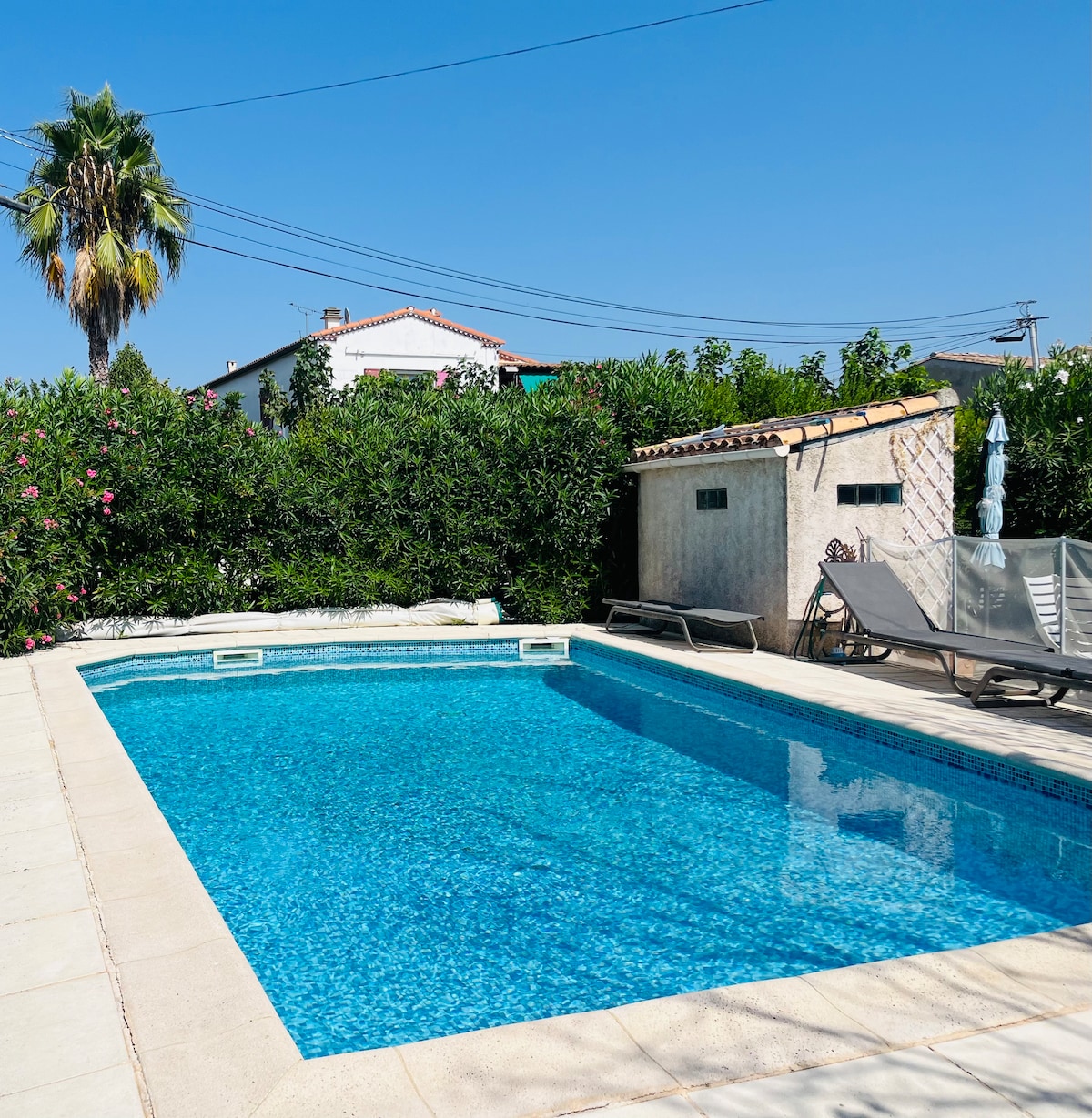 At the gates of the Camargue in Vauvert, ideal home with all the comforts for family near beaches and heated pool Large garden of 600 m² with heated pool terrace, sunbathing and barbecue Air-conditioned house with washing machine, dryer Large internal driveway to park 2 vehicles Close to the beaches of Grau du Roi and La Grande Motte 30 mn Nimes and Aigues Morte 30 minutes The Pont du Gard at 50 mn ... Saintes Marie de la Mer at 40 mn