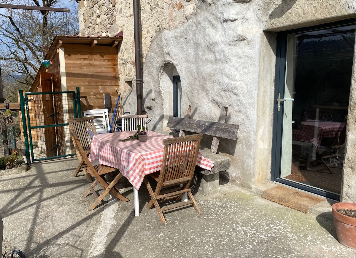 Apartment on the ground floor totally independent, adjoining the owners: Entrance / equipped kitchen, dining room Living room with TV and 2-seater sofa bed (140X190 mattress) Large bedroom with direct access to the bathroom. 160 X 200 bed and high quality bedding. A daybed that sleeps two more for one person. Corridor leading to the kitchen, the separate WC, a storage space and the bathroom. Bathroom with walk-in shower, large sink.