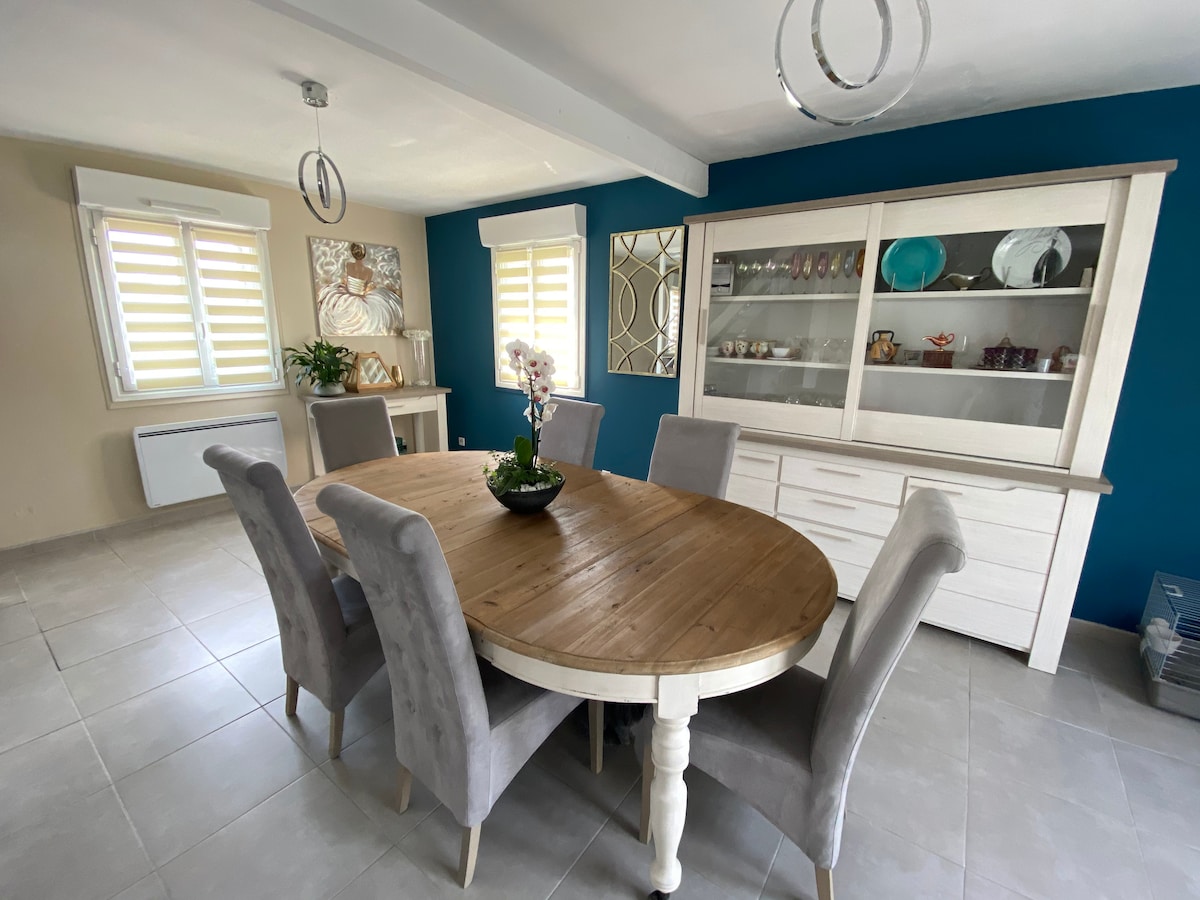 Discover Maison Melrose, an elegant Norman house in the heart of the private Maisons H Normandie estate, perfect for 8 guests. Located just 10 minutes from Deauville, Trouville, and Honfleur, this 4-bedroom, 4-bathroom home combines comfort and Norman charm with a furnished terrace, private garden, fireplace, fully equipped kitchen, and access to a heated pool (April to September), a game room (ping-pong, foosball, basketball arcade), and a playground (treehouse, slides, swings).
