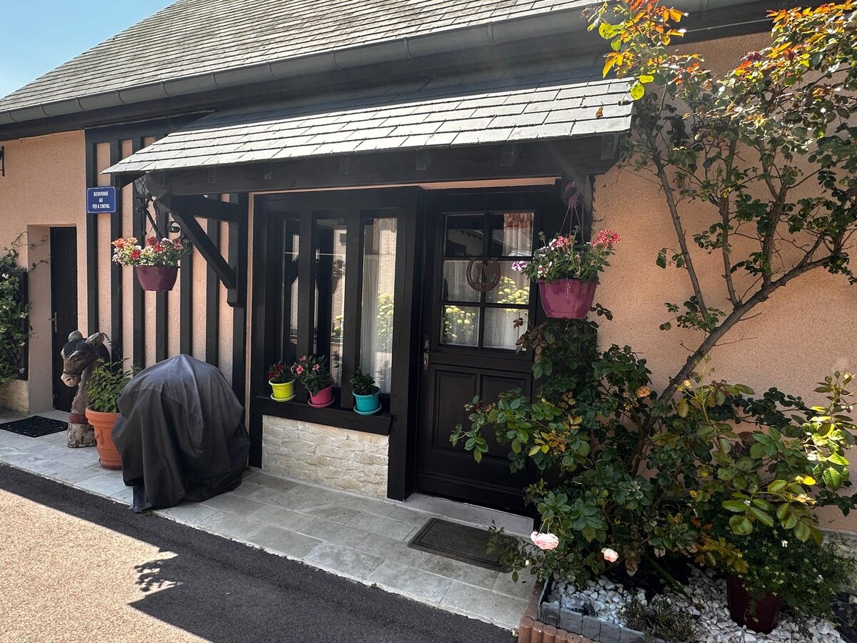 Dans propriété (état neuf) Gîte (non classé), avec terrasse. 2 personnes (1 lit 2 personnes à l'etage + couchage canapé convertible RDC). Proche Honfleur (5 min en voiture), Plage (5 min en voiture), Deauville (20min), Pont de Normandie (5 min). Place de parking (portail avec digicode) Entièrement équipé sauf lave linge, accès étage par escalier. WIFI gratuit (internet haut débit ) Kitchenette, 2xTV, douche italienne. Serviettes et draps : inclus. Non fumeur / Animaux non admis.