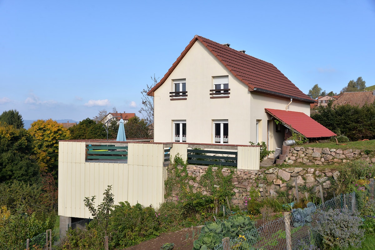 Totalement rénové, classé 3*, il est situé dans un écrin de verdure sur la route des vins à Barr, (capitale des vins ). Il est entièrement équipé, grande baie vitrée avec vue sur la forêt où vivent nos 4 adorables chèvres que vous pourrez aller voir. Ambiance très cocoon, son grand jardin borde une rivière . Le logement se trouve au 1er étage de notre habitation et comporte une entrée privative avec accès par le jardin. Proche de Strasbourg à 30mns, Colmar à 40 mns, europapark à 1 h