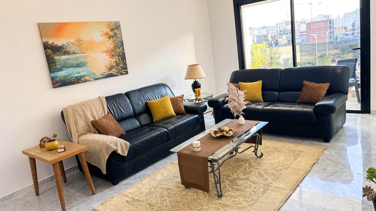 Bright, stylish, and newly designed—this 2-bedroom apartment in La Soukra is your perfect home base near the beach, the airport, and Tunis’ most vibrant neighborhoods. Enjoy: ✔ A wraparound terrace ✔ A king-size bed in the primary bedroom + 2 single beds in the second room ✔ Fully equipped kitchen with coffee maker, oven, and washing machine ✔ Fast WiFi, TV, and brand-new linens & towels ✔ Self check-in via lockbox for ultimate ease ✔ City views and natural light throughout