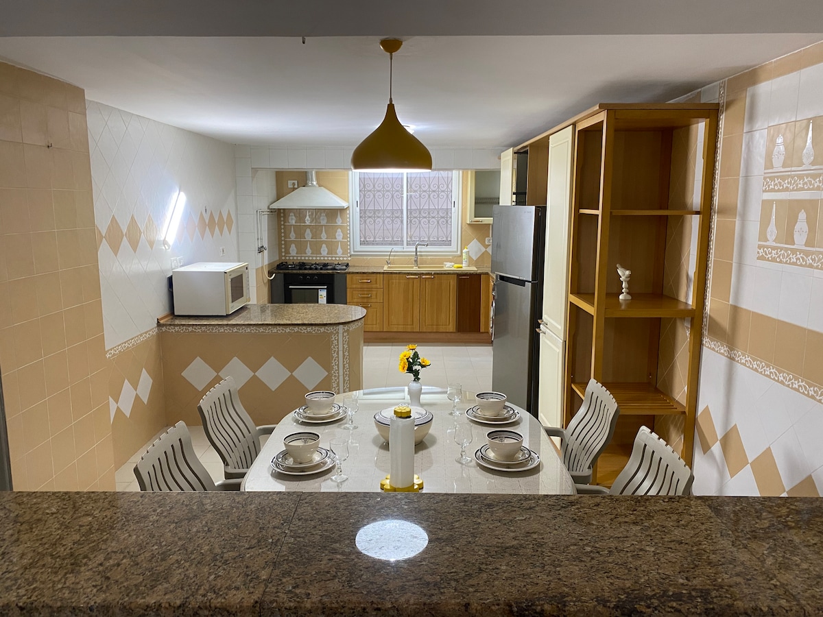 Venez passer votre séjour dans un bel appartement avec plafond artisanal tunisien. Profitez de ses deux terrasses pour vous détendre et profiter du soleil. Cet appartement est très bien situé, vous êtes à simplement 15 min des meilleurs endroits à visiter sur Tunis. Situé à quelques minutes du plus grand supermarché Carrefour de Tunisie, vous trouverez tous ce que vous souhaitez.