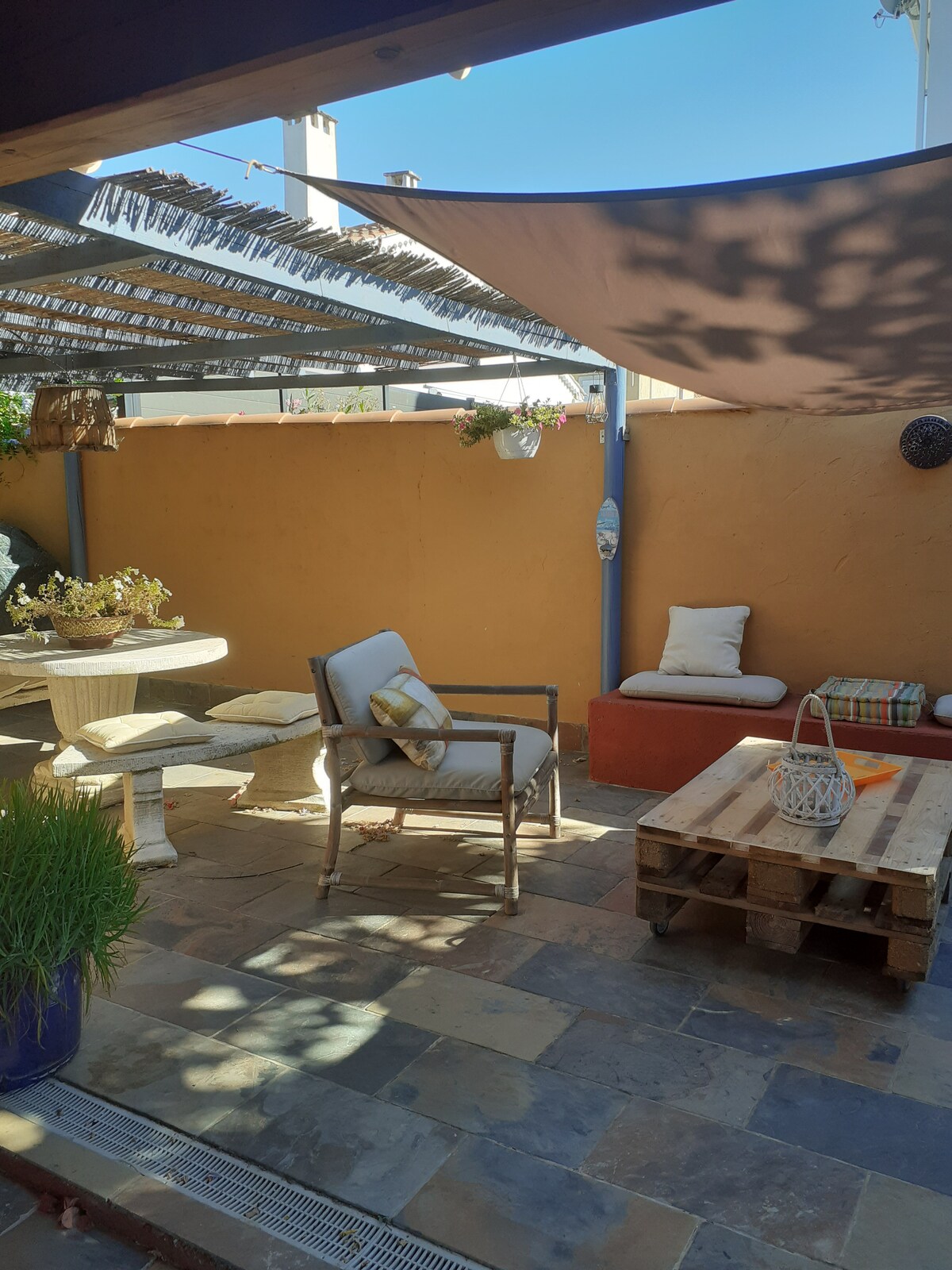 Joli Mazet décoré avec Amour ! Profitez d’un accès direct à la plage de Pramousquier par un chemin piétonnier (sans route à traverser) directement depuis le bas de la résidence. Notre villa, rénovée en 2022, se situe dans l’anse de Pramousquier, dans la résidence les Pescadières (du bas) quasiment les pieds dans l’eau! Elle fait environ 50 m² habitables et possède un jardin / terrasse d’environ 50 m² également.