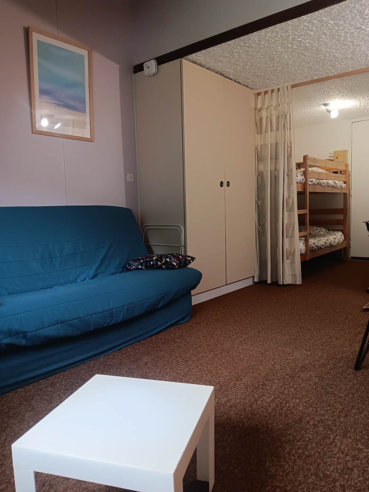 Studio situé en plein coeur de la station, il offre un accès facile aux commerces et aux activités. Résidence calme avec ascenseur, le studio possède un casier à ski et à chaussures dans le hall de l'immeuble. Composé d'un coin montagne avec 2 lits superposés 90x190, une SdB avec WC et d'un salon avec canapé clic clac. Cuisine toute équipée, plaque vitro, frigo, micro-ondes, senseo, appareil à raclette et tout le nécessaire. *Draps et serviettes de toilette non fournis. Ménage non compris.