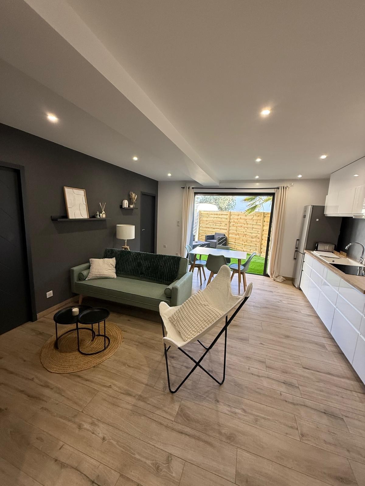 Pièce meublée de 25 m2 cuisine aménagée (réfrigérateur, four combiné : micro-ondes + traditionnel, plaques induction, hotte). Table + 4 chaises. Écran plat. WiFi. Canapé B Z confortable de 160 cm, matelas épais, lit fait à votre arrivée. Douche, lavabo, sèche-serviettes, sèche-cheveux. WC séparés. Placard/penderie. Nombreux rangements. Terrasse avec mobilier de jardin. Suite à plusieurs déconvenues, nous précisons que le ménage doit être effectué à vôtre départ. Non-fumeur ou à l'extérieur.