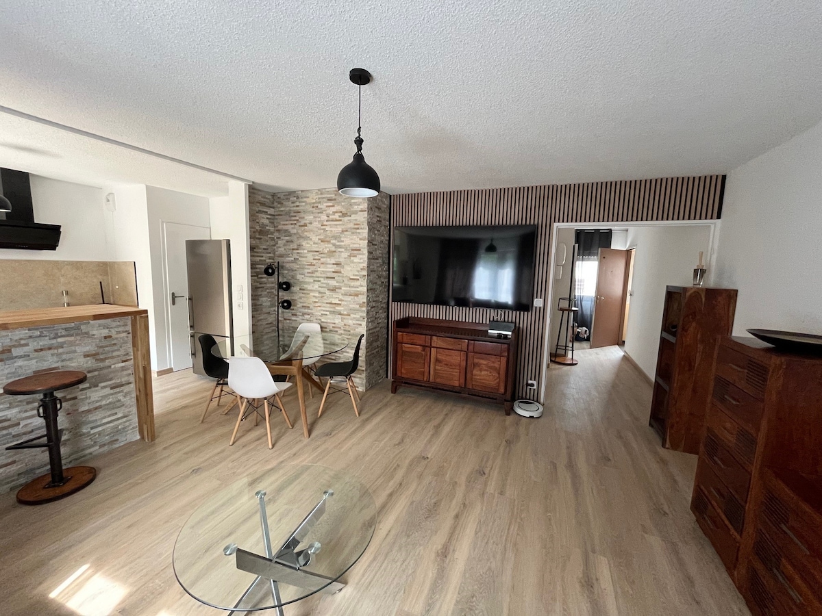 Passez un agréable séjour dans ce cocon entièrement rénové en rez-de chaussée , pour 2 personnes, équipé wifi et SMART TV connectée . Situé à 10 min du centre-ville à pied et 3 minutes à pied de la gare nord du mans, stationnement gratuit en face de la résidence. Notre appartement a été conçu pour vous permettre d'y trouver tout le confort dont vous aurez besoin. (2 minutes à pied du tramway, 2minutes à pied d’un supermarché. )