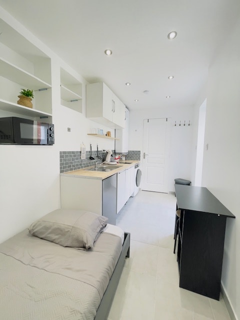 Welcome to our newly renovated 29m² Scandinavian-style studio, right in the heart of Le Mans! ✨ Enjoy a bright top-floor space with a private 9m² terrace and modern, cozy furnishings for a perfect stay. Ideal location : -5 min walk to city center (Place République) -5 min walk to tram stop "Préfecture" -12 min walk to Le Mans SNCF station -20 min walk / 5 min drive to the Old Town -45 min by tram / 13 min by car to the 24h Le Mans Circuit