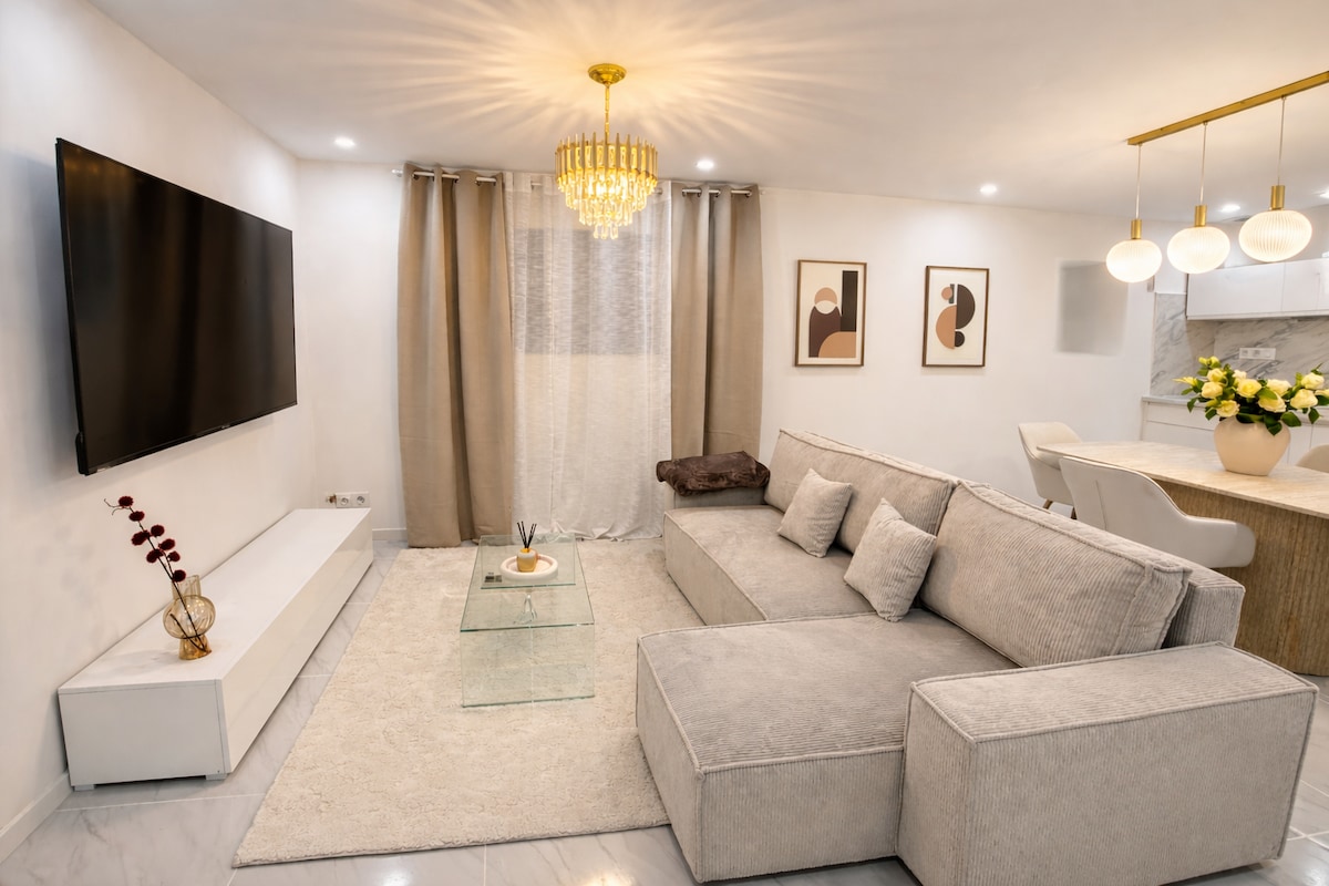 Bienvenue dans le cinéma des plantes, un havre de paix au cœur de la ville. Notre appartement, doté d'une terrasse privative pour des moments de détente en plein air, vous séduira dès votre arrivée. La pièce de vie lumineuse et moderne comprend une cuisine entièrement aménagée et équipée, idéale pour préparer de délicieux repas. Descendez quelques marches pour découvrir notre chambre en sous-sol, véritable cocon intimiste équipé d'une télévision XXL de 164 cm pour des soirées cinéma inoubliable