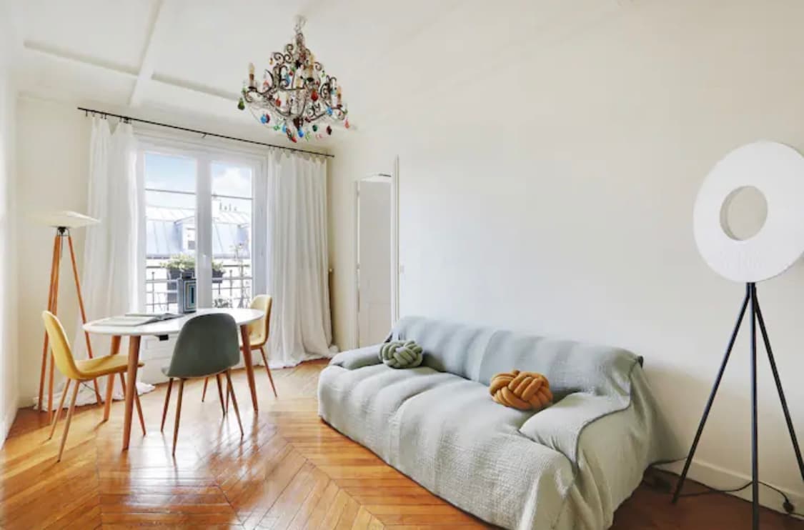 Boasting herringbone parquet flooring, fine furnishings and abundant natural light, this sophisticated 110m2 apartment offers a bright, elegant, warm and luxurious atmosphere. The apartment, with fireplace and moldings, combining charm, calm and comfort is located in one of the oldest passages in the historic center of Paris. This apartment has an official tourist accommodation operating license. So it's perfectly legal.