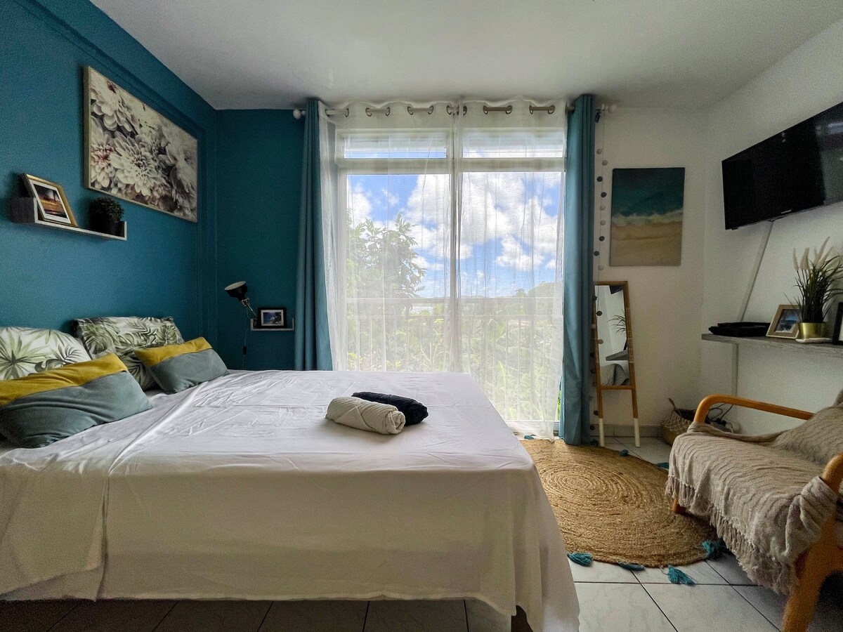 🌴 Appartement cosy avec vue sur la Marina 🌴 Posez vos valises et profitez d’un vrai moment de douceur dans ce T2 calme et lumineux, situé au cœur du Marin, juste en face de la Marina. Sa terrasse offre une vue agréable, idéale pour prendre le petit-déjeuner ou se détendre en fin de journée. Décoré avec soin et pensé pour votre confort, l’appartement vous accueille dans une ambiance chaleureuse, parfaite pour un séjour à deux ou en famille.