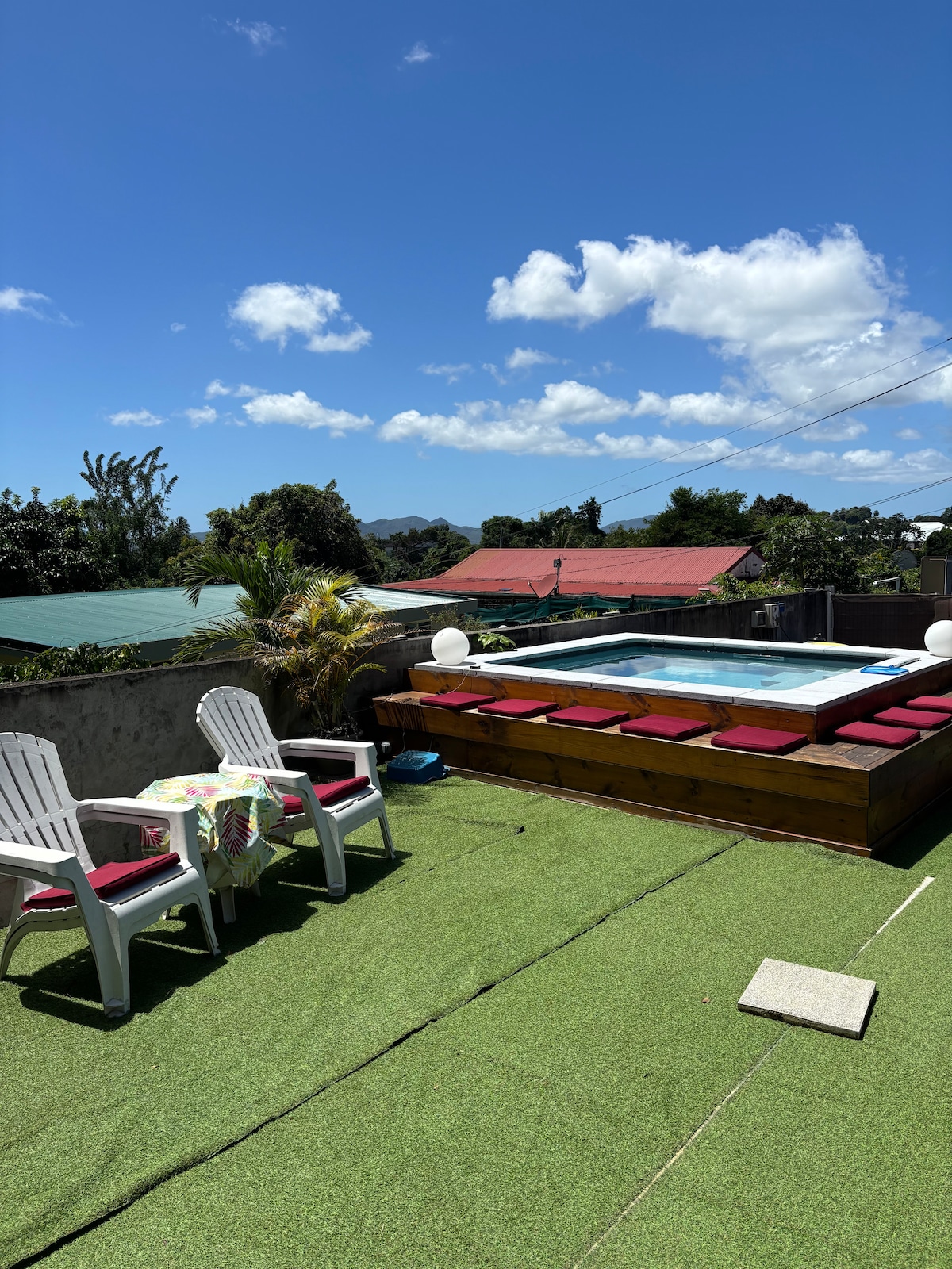 PAS DE FETE. F2 avec piscine , proche aéroport. Bas de villa entier pour Vacanciers et Déplacements Professionnels, wi-fi. A 10 mn de L'Aéroport, 15 mn du CHUM Pierre Zobda Quitman , 12 mn de Fort de France ,proche de Mangot Vulcin, l'IMS et des principales zones d'activités de l’Île. 1 centre commercial à 400m à pied, bureau de poste, boulangerie, GAB à 200m à pied . Vous bénéficiez du point de départ pour les plages et activités du sud et nord de l’Île. stationnement intérieur