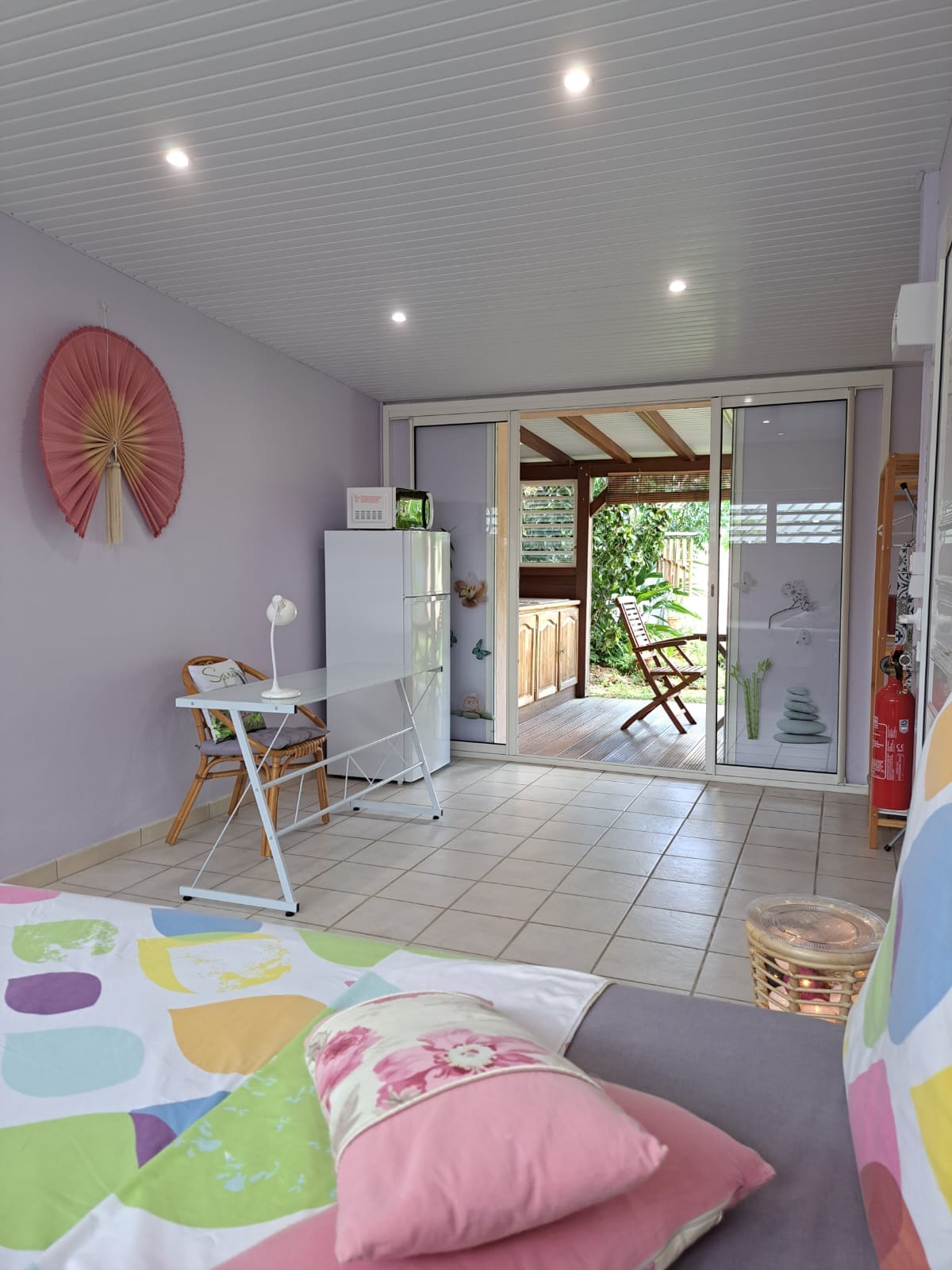 studio de 22m2 meublé et climatisé. Cuisine équipée: - Réfrigérateur, micro-ondes, cafetière, grille-pain et vaisselle Grande piscine à disposition avec jardin arboré et parking. Proche toutes commodités. Draps et serviettes fournis. wifi disponible dans le studio.