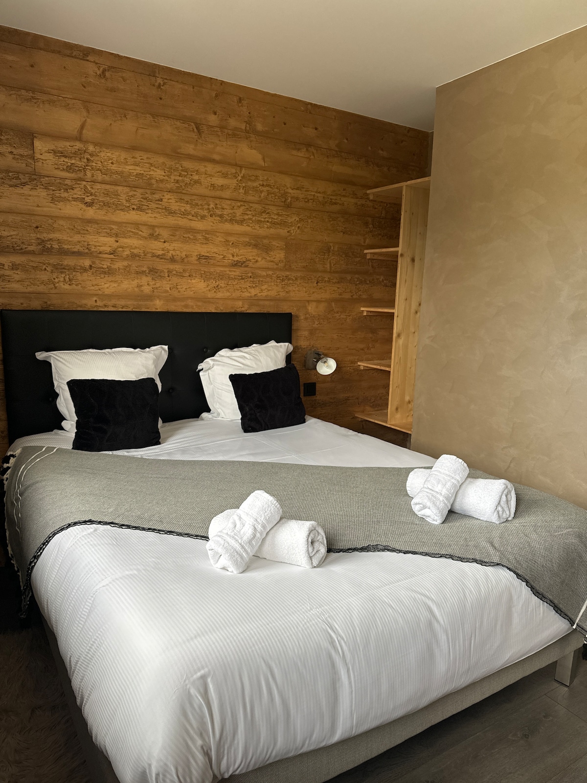 Petit appartement Chaleureux de 45m2 dans une maison de village à coté d'un hôtel restaurant. Composé d'une entrée, 2 chambres avec 2 lits chacune (qui peuvent faire un grand lit sur demande), un salle de bain avec une douche à l'italienne. Il y a également une petite cuisine composée d'une kitchenette et d'une banquette qui peu faire lit. Dans chaque pièce vous trouverez une télé et un placard pour les vêtements. Chaque chambre à un accès sur une petite terrasse avec une vue sur la montagne.