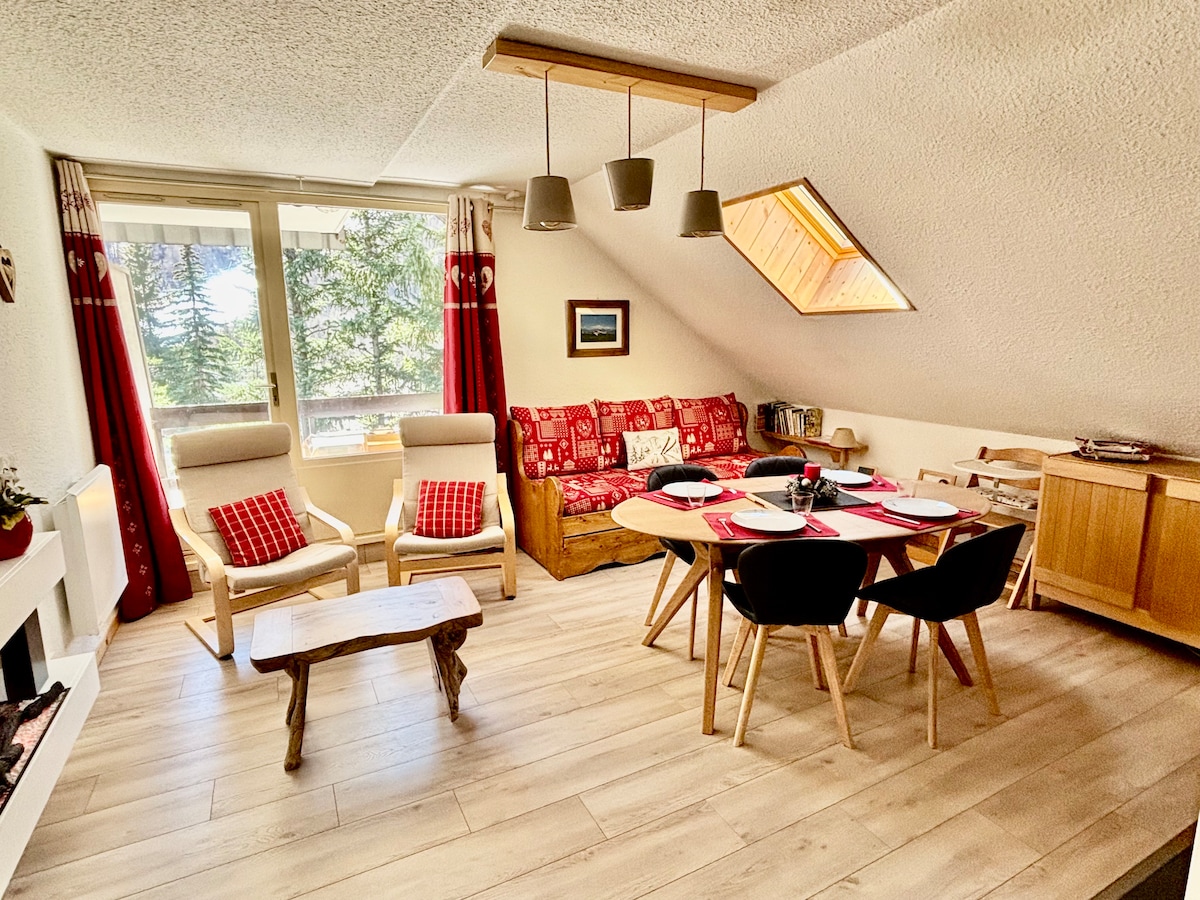 Fait pour accueillir la famille qui a grandi : au rez-de-jardin, la cuisine équipée prolonge le séjour ouvert; le tout ensoleillé. 2 chambres , SdB et WC séparés. Confort moderne pensé bois et lumière. Navette ski, épicerie et balades à proximité.