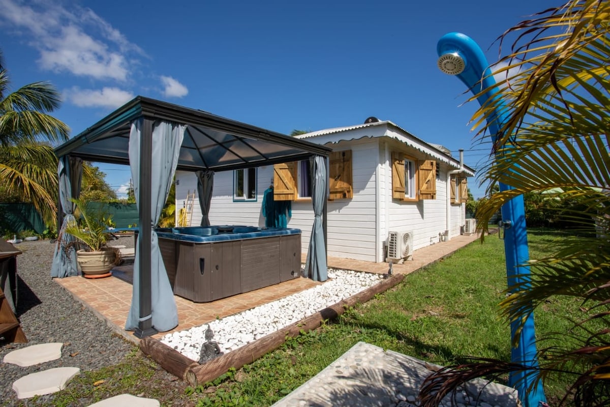 Un joli bungalow indépendant tout confort, un vrai P’tit coin de paradis! Une terrasse spacieuse et privative avec votre SPA semi-rigide dans un cadre calme et verdoyant. Équipé d’une citerne pour palier aux coupures d’eau. Situé à 7 minutes en voiture du centre ville de Saint François et 5 mins de la plage des raisins clairs. pour passer des vacances de rêve!!