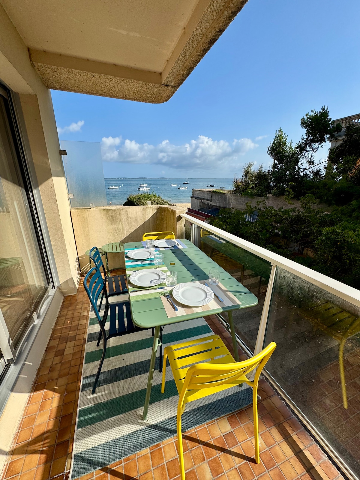 Bel appartement vue mer en 1ere ligne ! Composé d’ 1 chambre + balcon + 1 Place de Parking privé + Fibre wifi . Appartement traversant Situé au 1er étage avec ascenseur. Grand séjour et appartement disposant de 5 couchages. Accès gare à pied. Internet par la Fibre = Télétravail possible. Résidence du front de mer située à proximité de la promenade entre la jetée Thiers et celle d’Eyrac, dans l’hypercentre d’Arcachon : A proximité immédiate de restaurants.